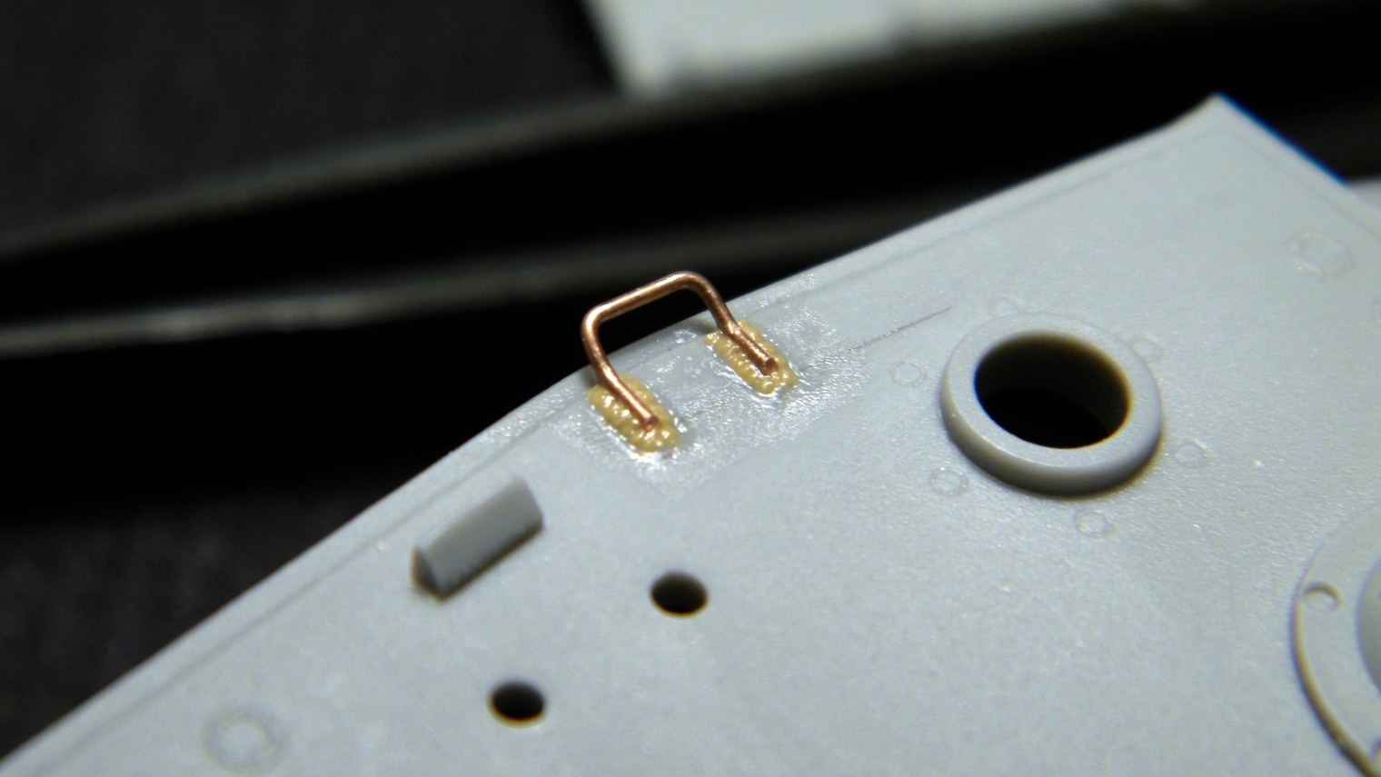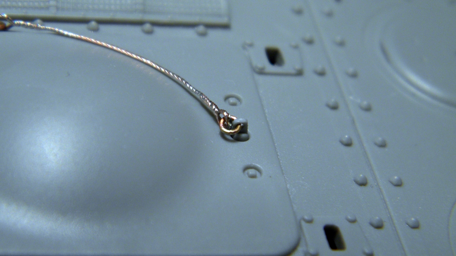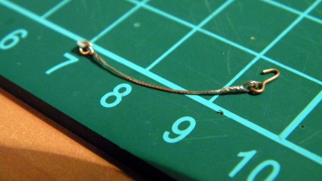 - трос с крючком на верхнем кормовом листе (?) из тонкого многожильного провода + медная проволока;