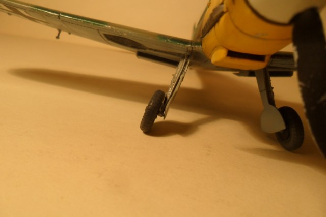 Насчет двигателя. Двигатель окрашивался полностью в темный металл. Моторама цвета RLM 02(тот же цвет, что и стойки шасси). RLM 02 у вас слишком бледный...
