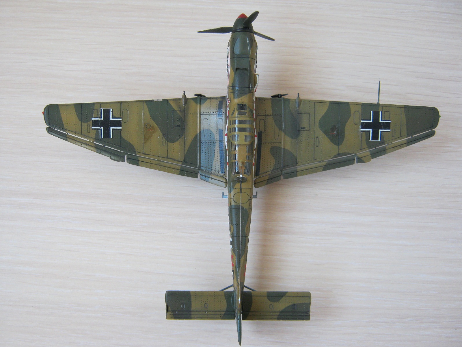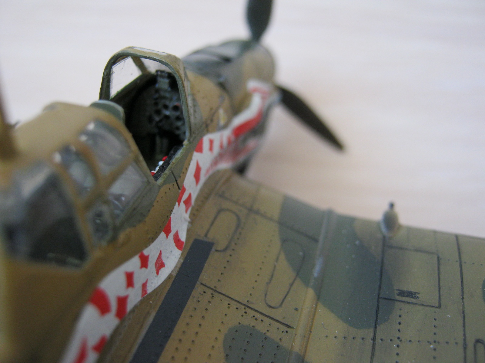 Что увидел: на фото №8 две декальки на крыле у кабины (если не ошибаюсь, должны изобрадать что-то типа резины) перепутаны местами. Их косой срез, как мне кажется, должен идти вдоль задней кромки крыла.