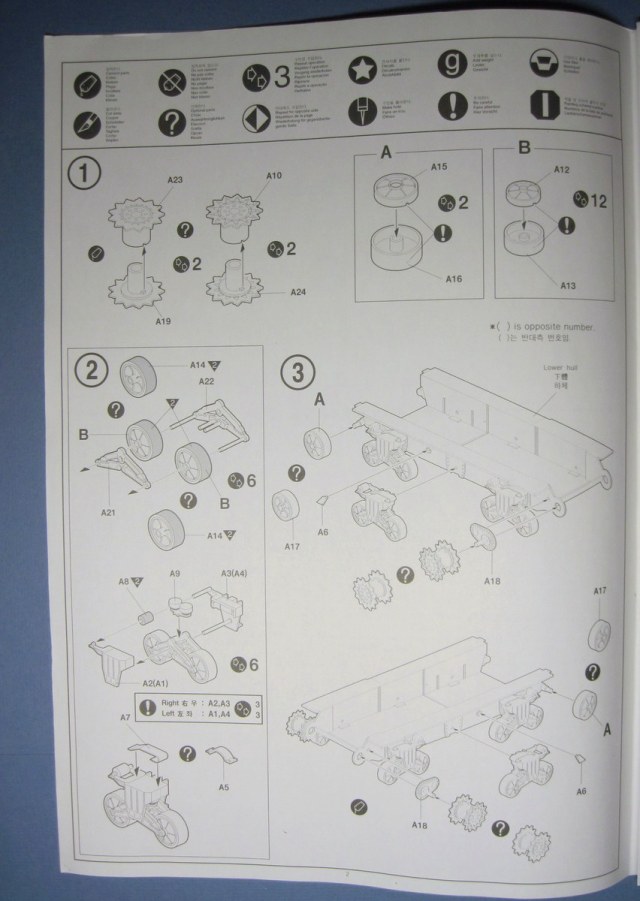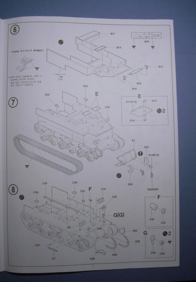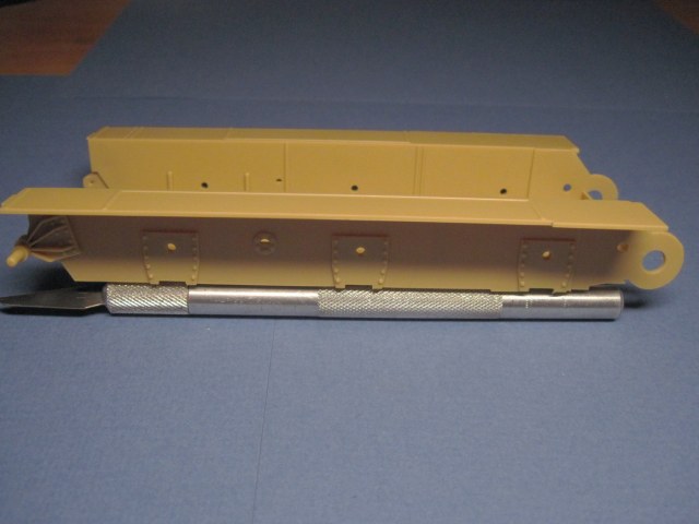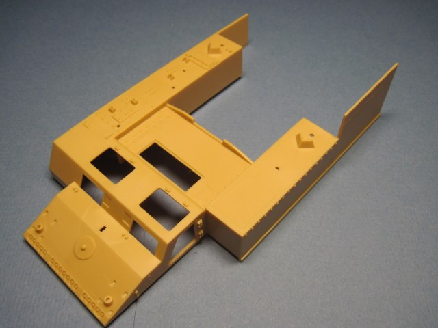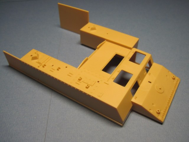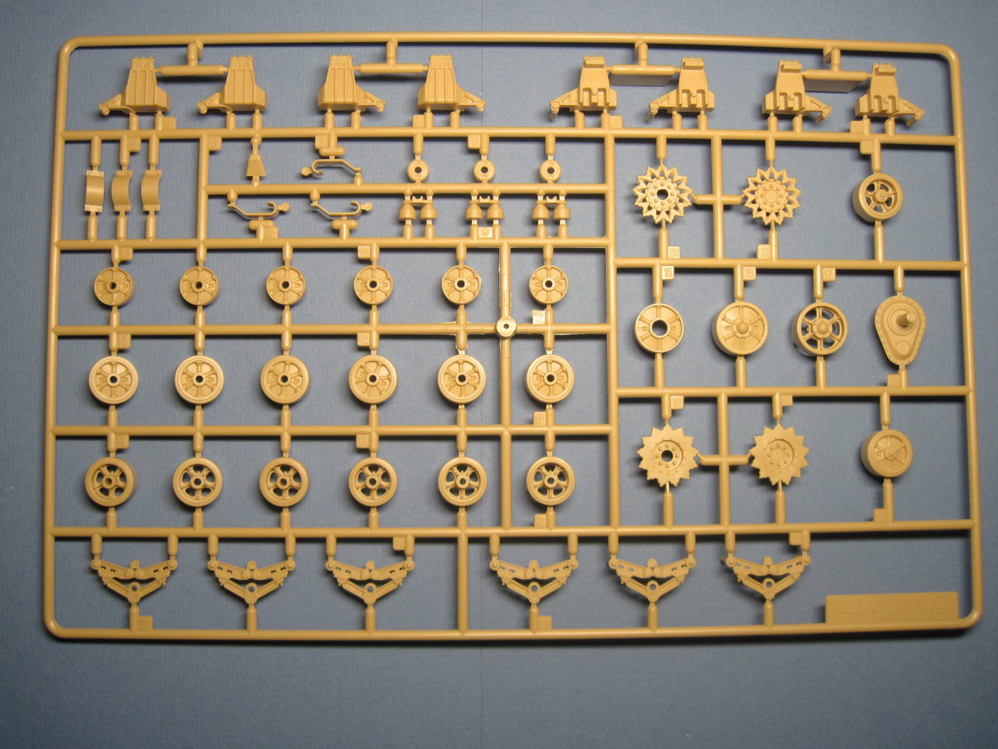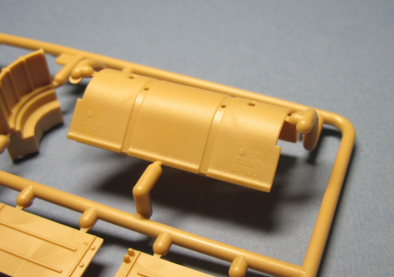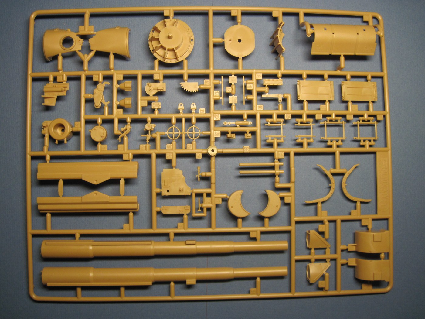 При осмотре не найдено облоя, однако имеется очень много толкателей. Повсюду они, почти на каждой детали, и не факт, что при сборке они окажутся на внутренних поверхностях. Ствол из двух половинок, для любителей железа есть замена от Barrel Depot. На деталях ходовой и на лобовой детали похоже есть литьевые номера.
