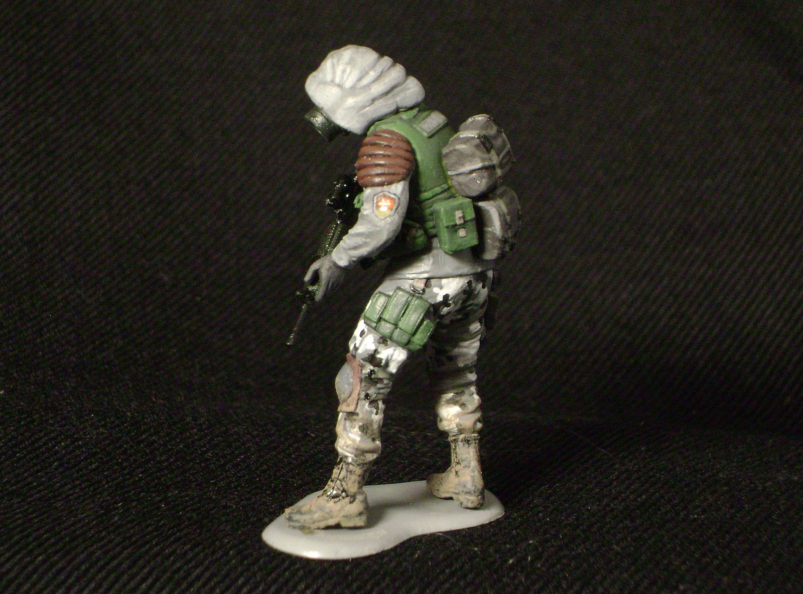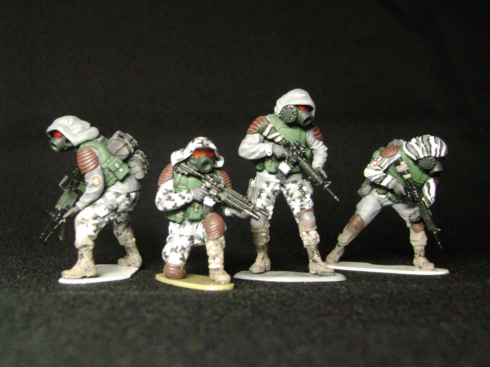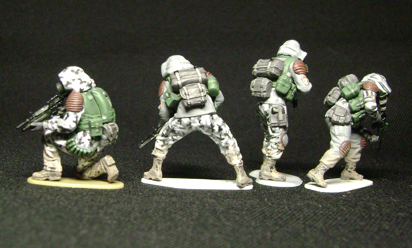 Есть косяки: утяжины на флягах - даже не знаю почему не устранил... у двоих отсутствуют ремни на оружии - при постановке на диораму сделаю... не очень удачно загрязнил ботинки - жду советов от коллег... фигуры немного блестят - фотосессия как-то не задалась - в живую они матовые...