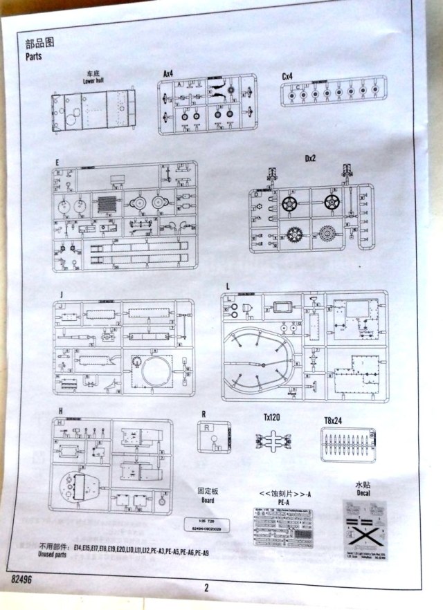 Набор сделан на основе предыдущего набора двухбашенного танка, просто добавлены: литник с цилиндрической башней, поручневой антенной и вооружением, литник с измененной подбашенной коробкой (для одной башни) и литник с исправленными деталями корпуса (ВЛД с лючком доступа к трансмиссии и крыша МТО с иным рисунком расположения люков и болтов).