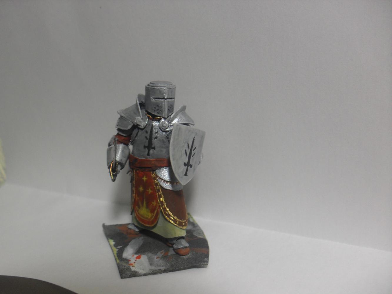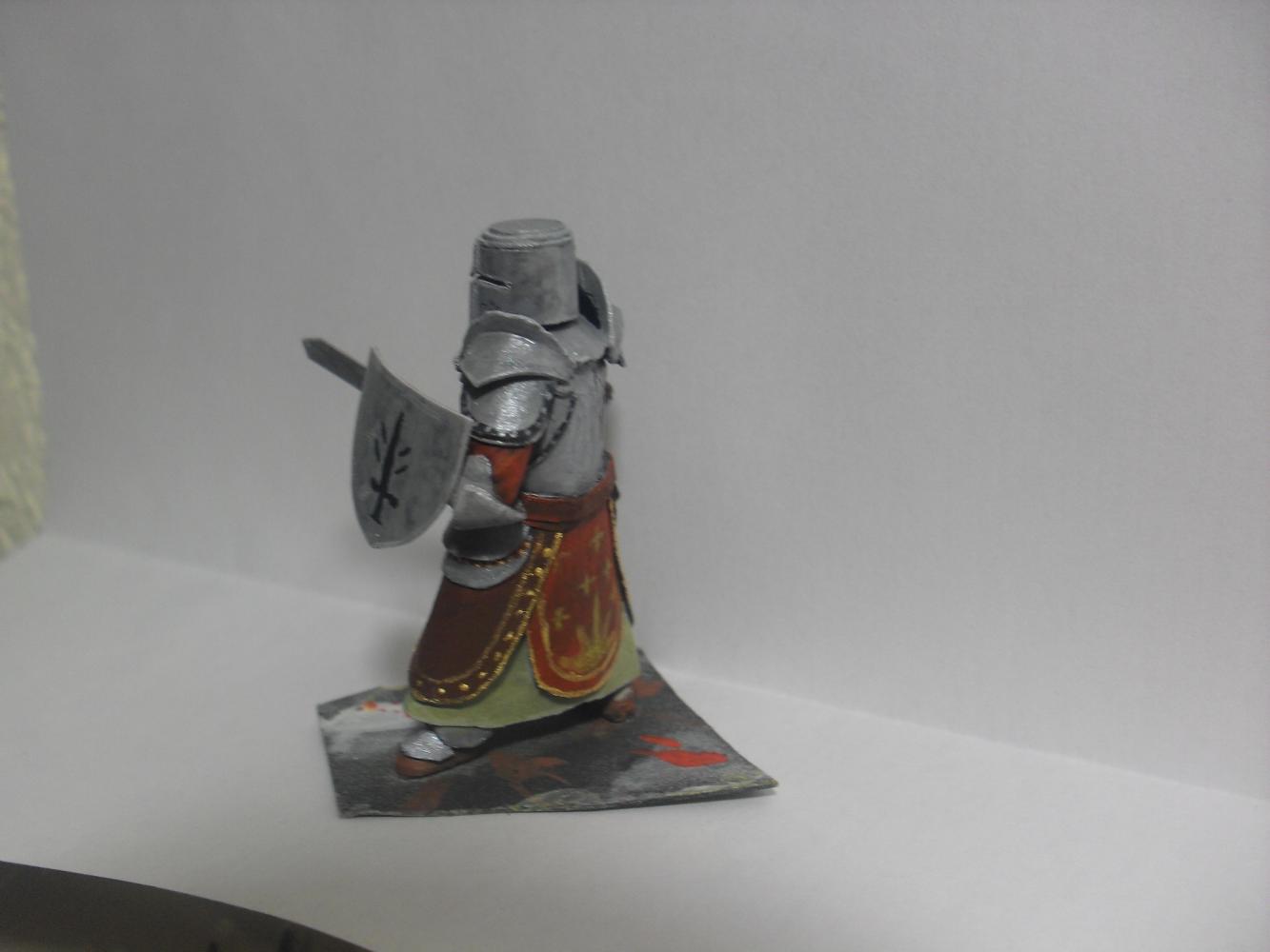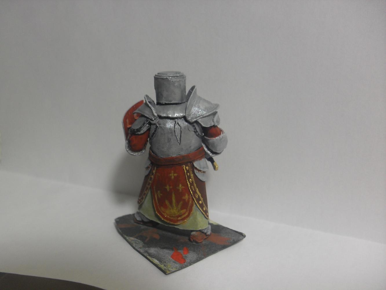 Делал как вам уже известно по стандарту. Частями (как настоящие латы) одевал кусочки картона на миниатюру (старая, вся поломанная, от звезды какой то русской пехоты.). Мечь из жестянки (консерва из под сгущёнки :)).