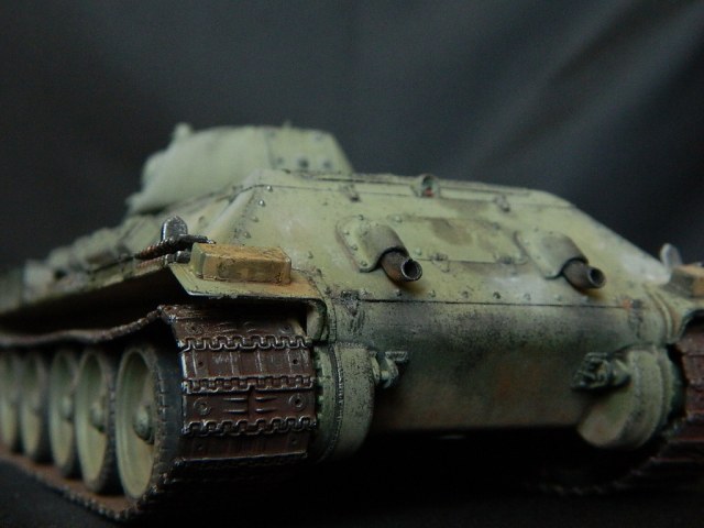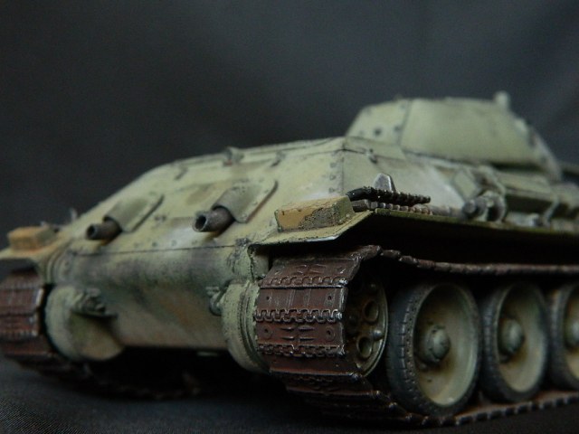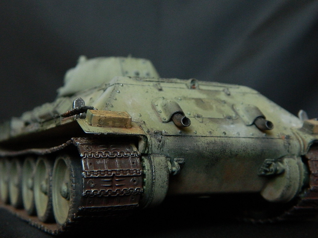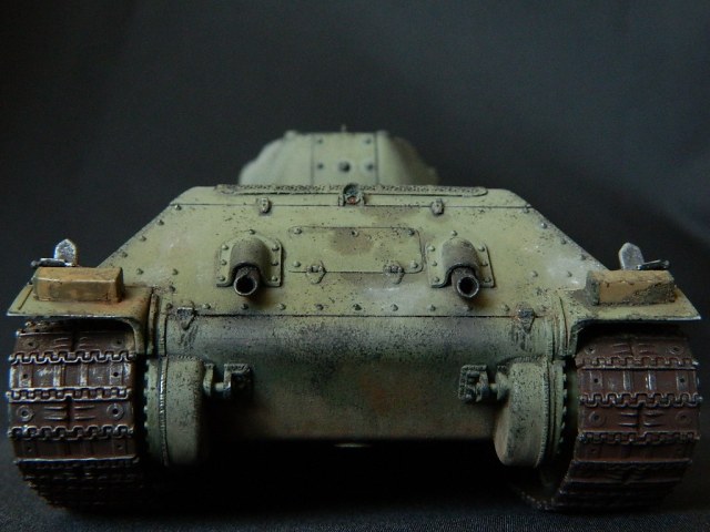 Вроде хорошая модель. А можно подакапываться?))) Что за капельки по всей поверхности? сколы? гребни траков сухой кистью бы пройтись. ну и перископ у мехвода чемто разноцветным отдает, а в основном там пластинка металла была отполированная, если не ошибаюсь. как-то так. с уважением.
