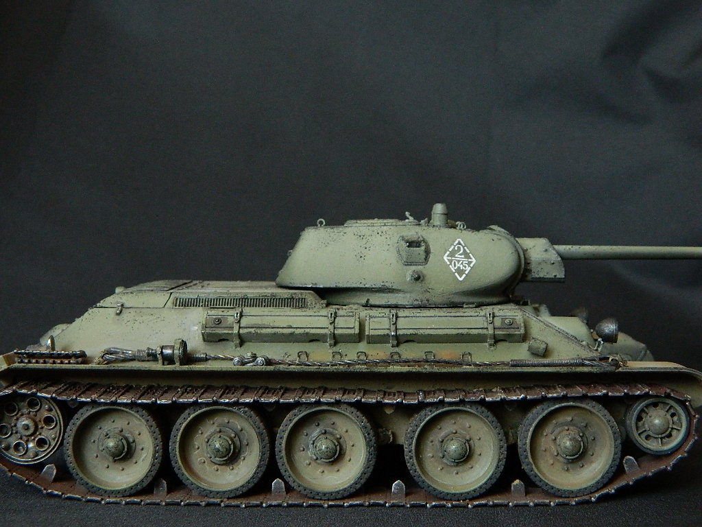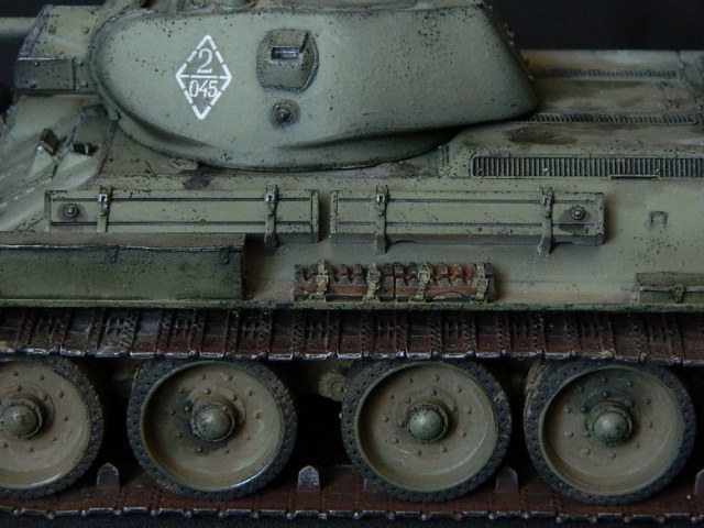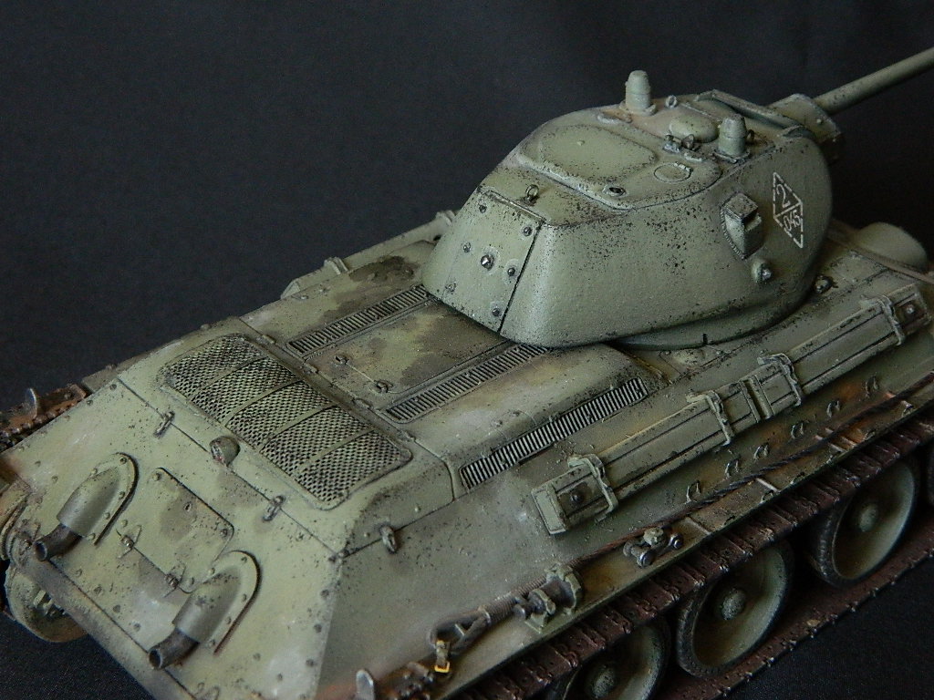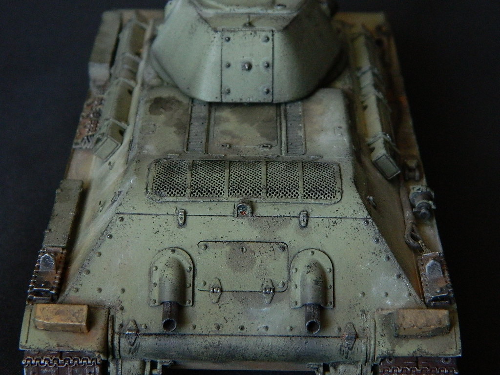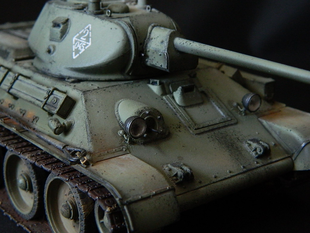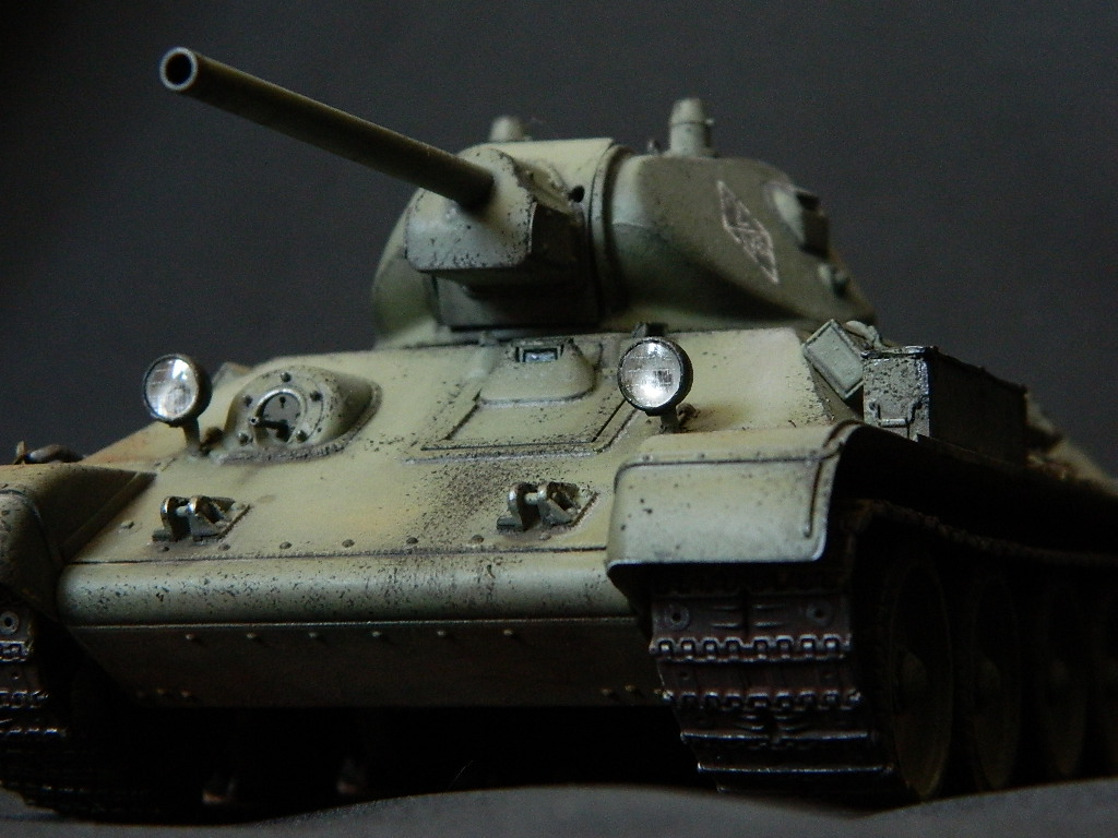 Выставляю этот довольно известный кит. Модель в принципе вся из коробки с небольшими доработками. Старался выдержать матчасть, что учитывая огромное количество "знатоков "тридцатьчетверки" весьма проблематично :)
