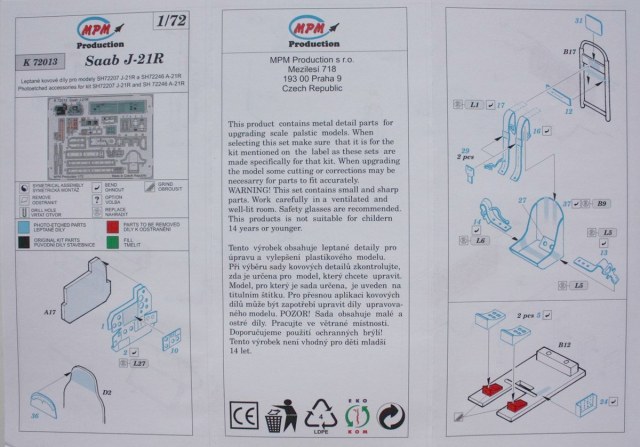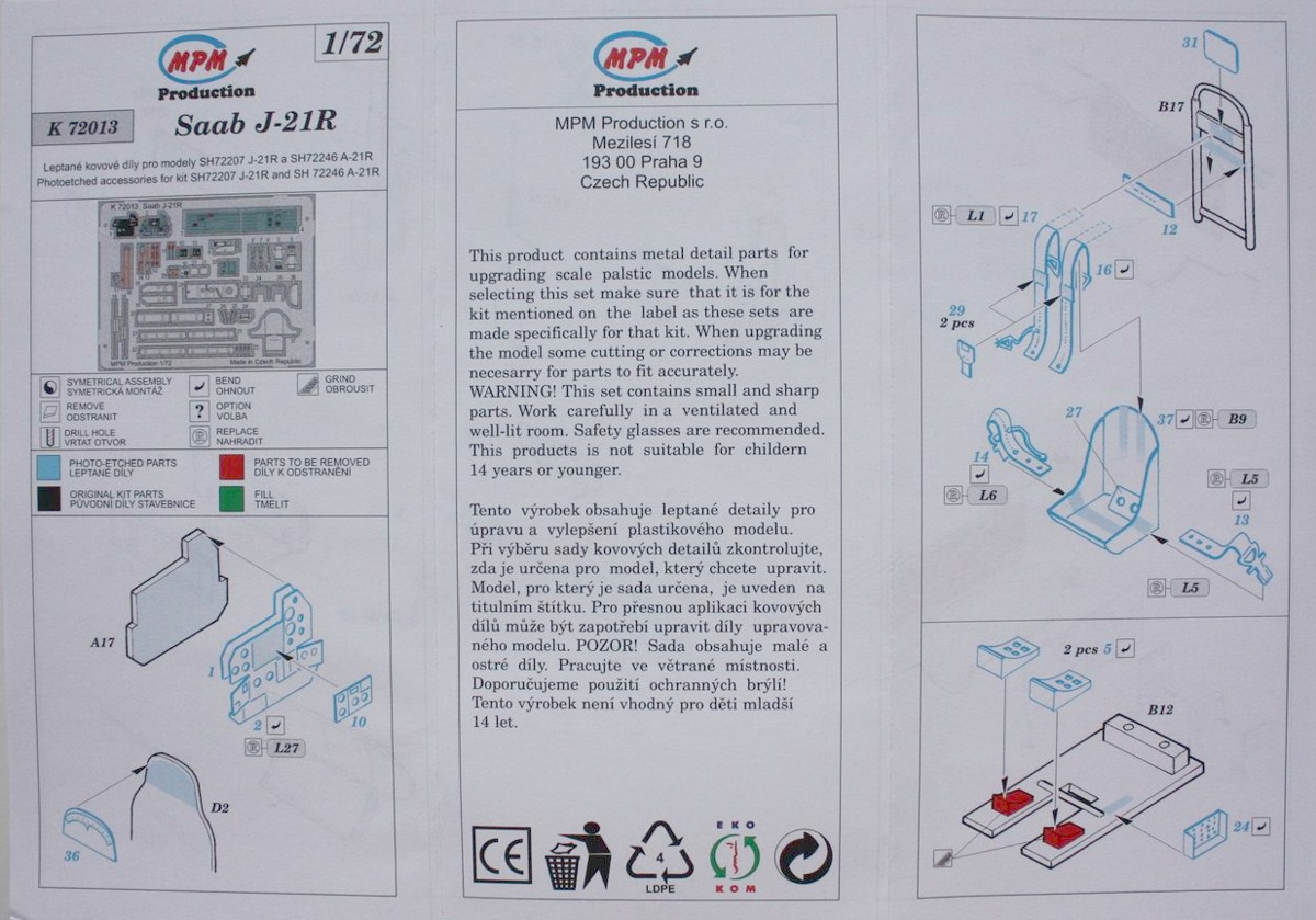 Качественно травление от МРМ для их же моделей SAAB J-21R и SAAB А-21R, выпускаемых под торговой маркой Special Hobby.