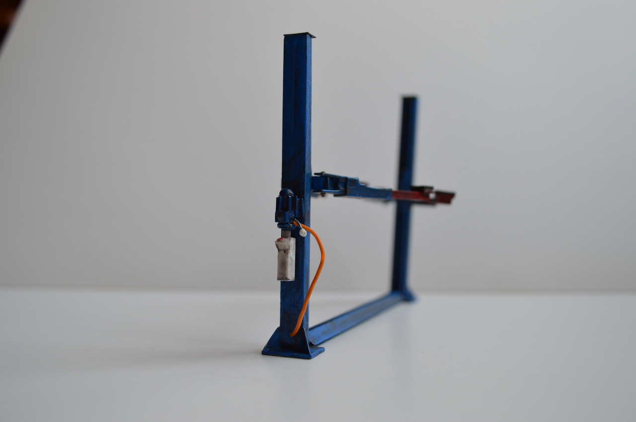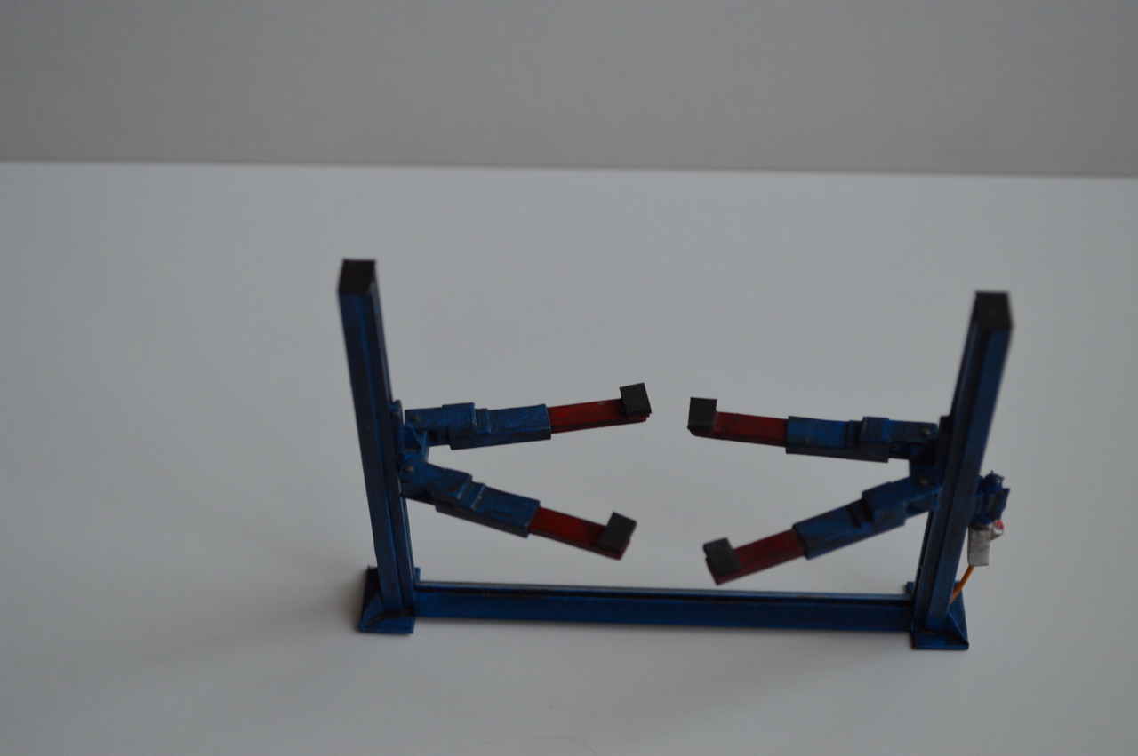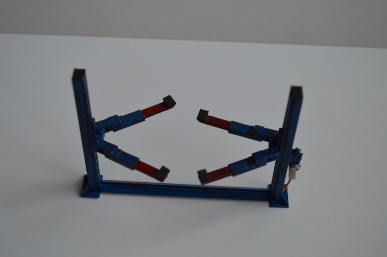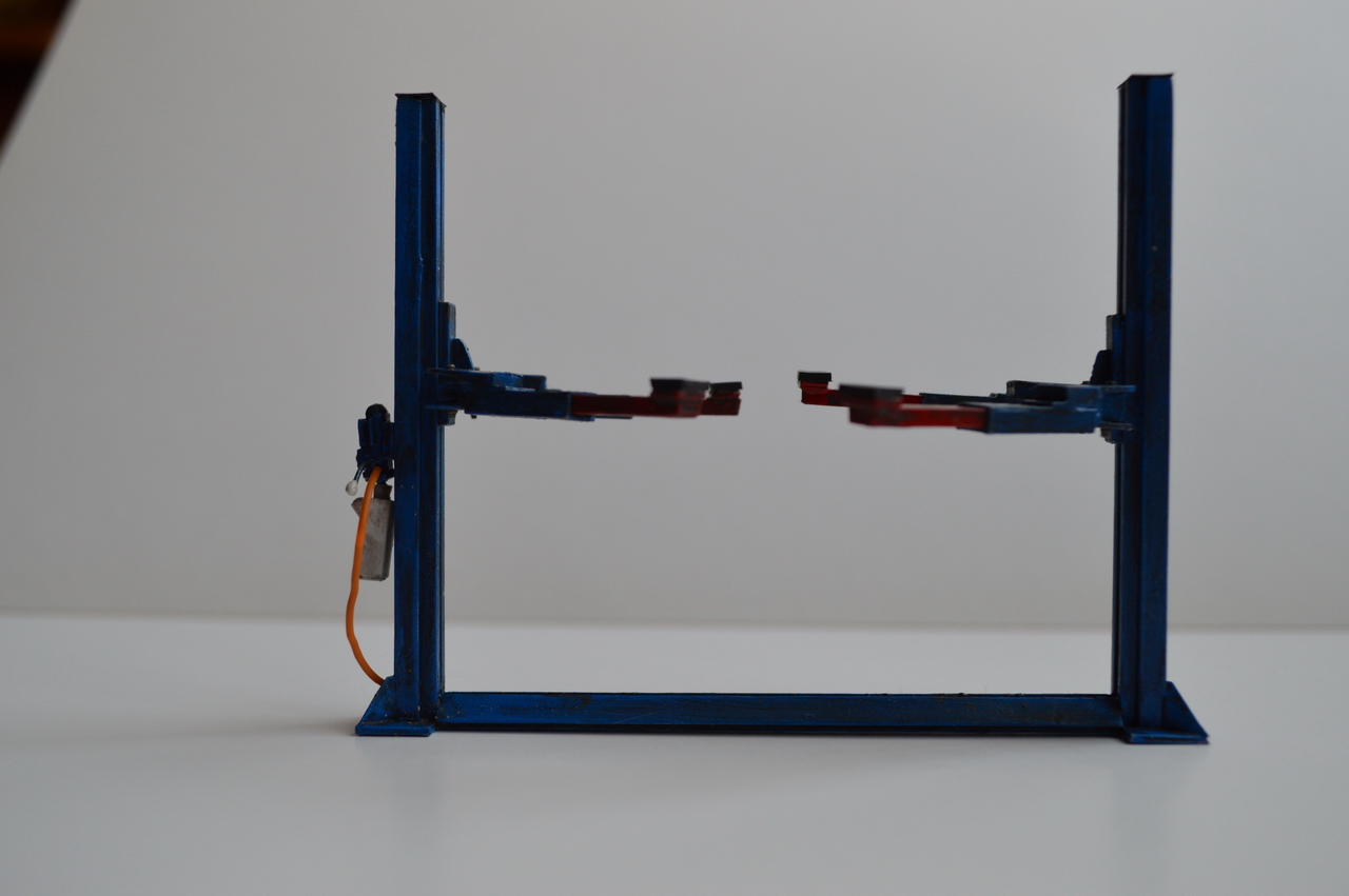 Реализованы такие вещи как, регилируемая высота подъёма автомобиля, телескопические плечи для установки автомобиля.
