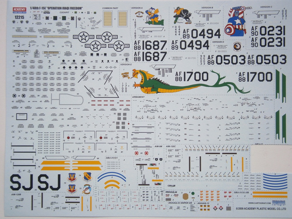 The decal sheet, designed by Eduard and printed by Cartograf features four colorful and attractive markings for USAF F-15s.
