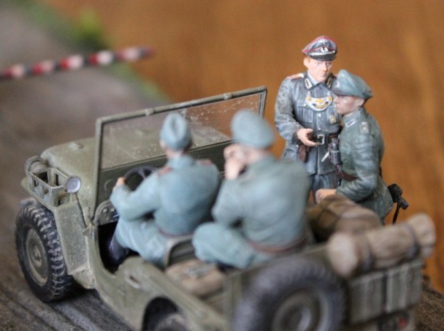 Издалека нормально смотрится. Вблизи бросаются в глаза ошибки начинающего моделиста. Думаю, если будете работать, всё получится.По матчасти критиковать не буду -но только непонятно, зачем вы "Виллису" решётку вырезали - так делали только британцы из SAS в Африке. To Aleksey - немцы использовали "Виллисы" уже начиная с 1942г.