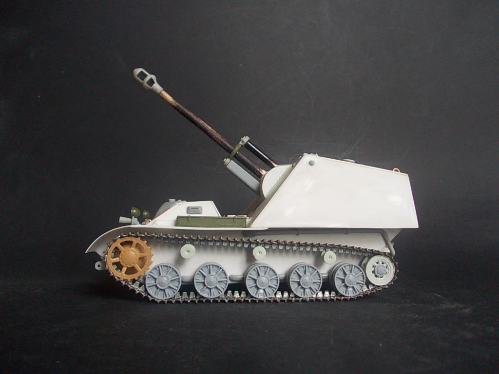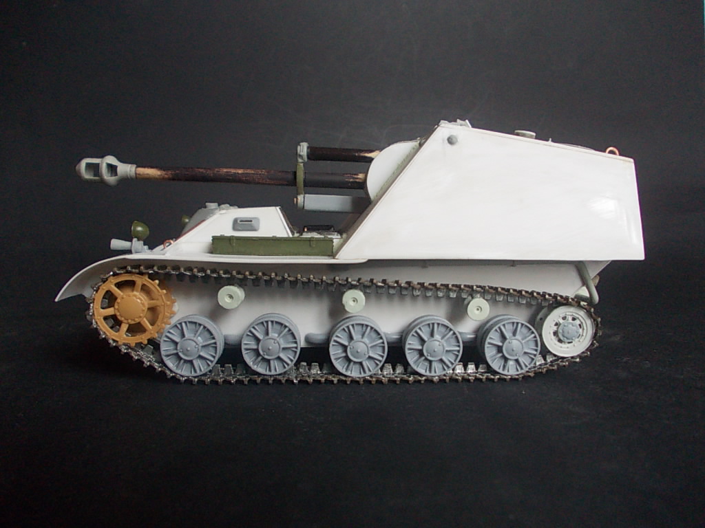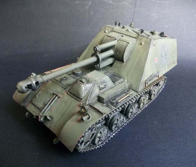 Отлично вышло! Расположение фар на крыльях, и смотровая щель действительно к "немчикам" клонит. Можно предложить к альтернативной САУ альтернативный виток истории, - что-то на подобе совместного проэкта СССР и Германии для вооружения частей, совместно воюющей с "Антантой". Сейчас в сети полно "альтернативки", - бредовой, и не очень. Как-то мне этим повеяло :-) А исполнение, - как всегда на высоте!