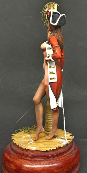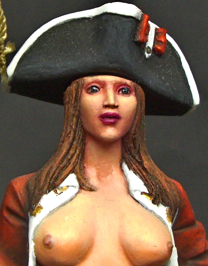 На счет исторического сведения: думаю врятли, даж самая грязная капитанша спокойно так расхаживала по пиратским палубам, при своих же. Как уже было выше сказано, вероятно - это одна из наполеоновских прихотей.