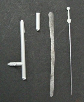 Рукоять сделал из простого литника - вырезал скальпелем и проделав отверстие вставил в неё клинок.