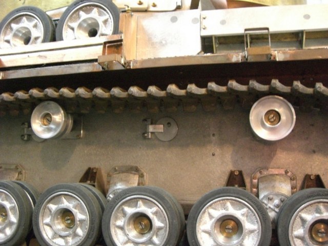 Траки и некоторые детали отливают из алюминия , корпуса наборные. Бандажи на катки отлиты из резины.