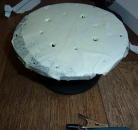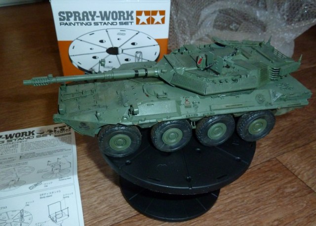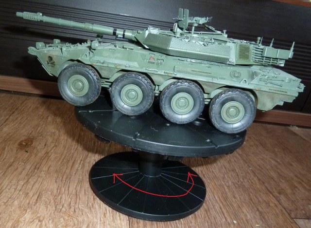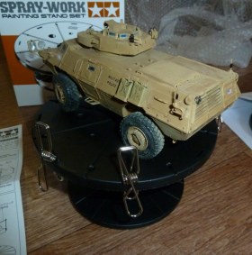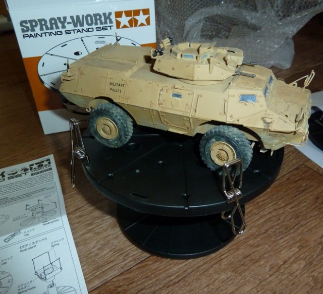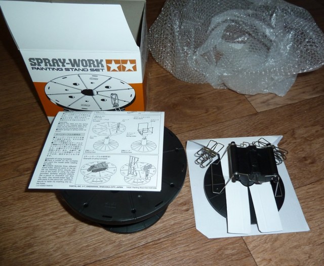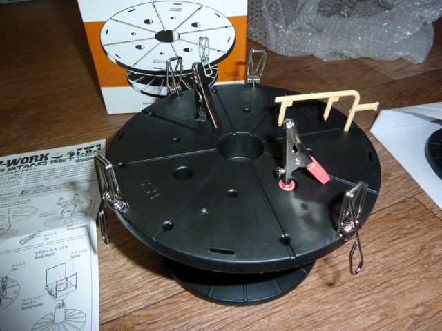 станция для покраски аэрографом....да впрочем и кистью тоже удобно=) не дает лапать руками и легко вращается (толкать нужно основание подставочки с насечками)