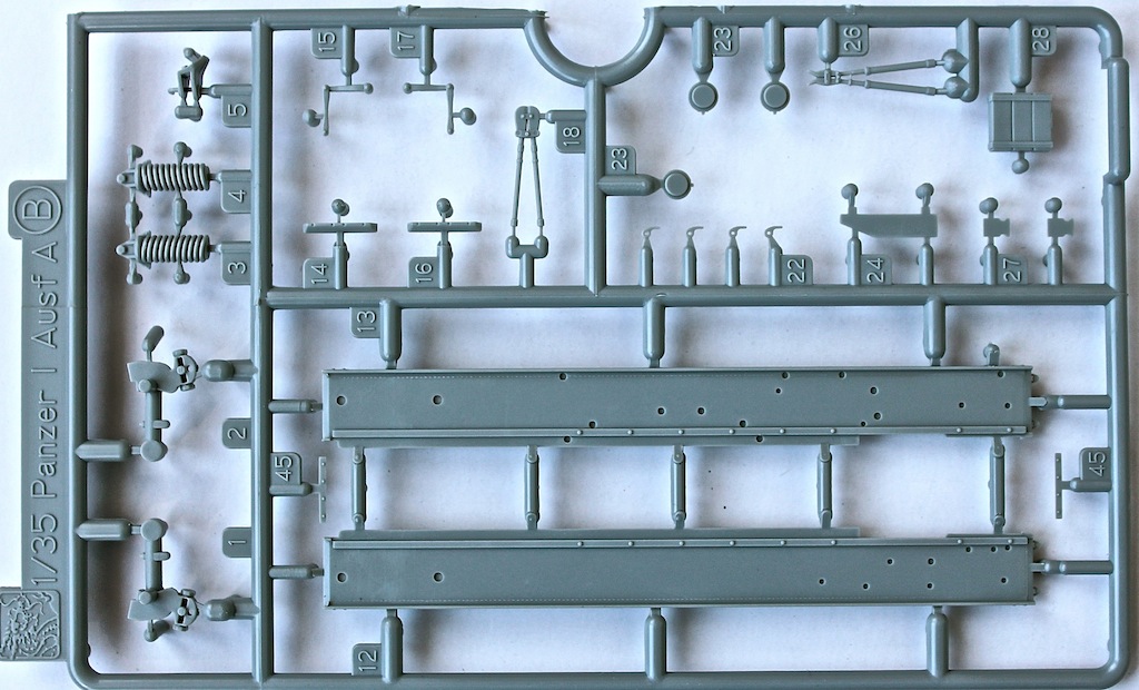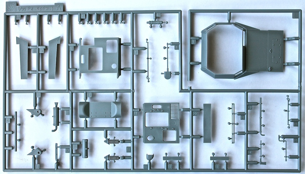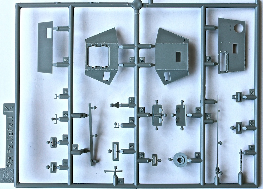 Колличество деталей, для такой машины, весьма, порядочное. Детализация на высоте. Не много фототравления. Металлическая, рамочная антенна в пластиковой коробочке. Траки Magic Track.