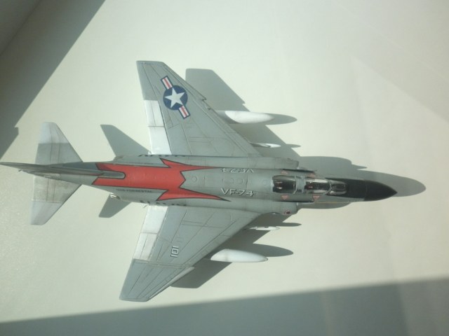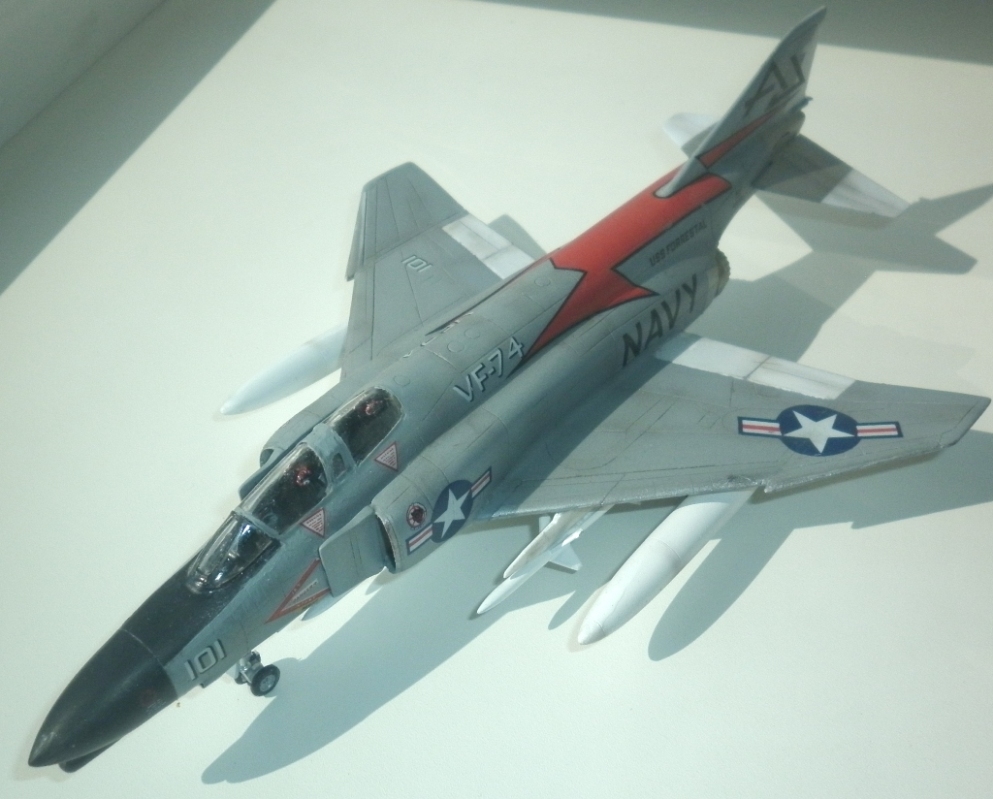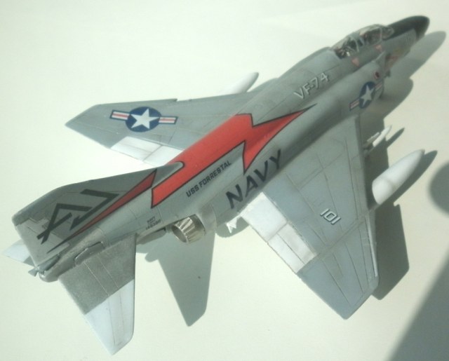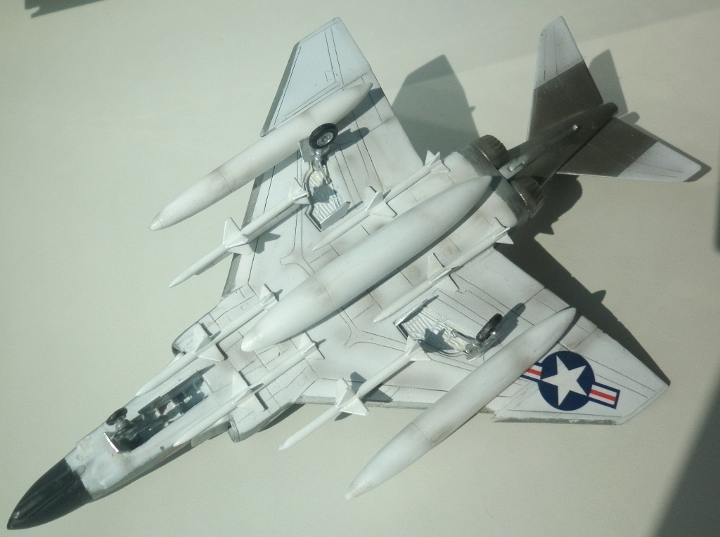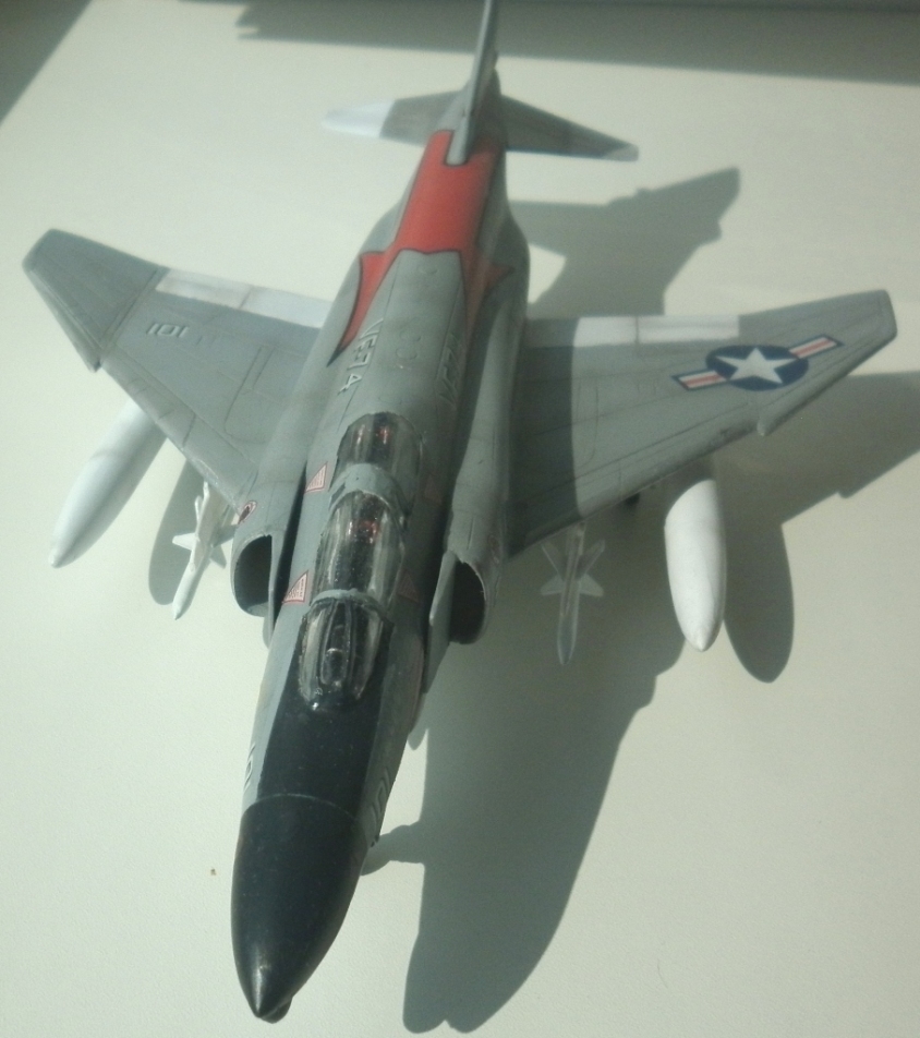 Модель довольно древняя . В чём- то лучше чем модель от НОВО ( подвижный стабилизатор, деталированные ниши основного шасси,разнообразные варианты подвески , да и уникальное явление среди модельных фирм - возможность выбора одной из пяти (!) модификаций ( B,C,D,E,J ) в вариантах флота и армии США и ВВС Израиля. Достоинством является и очень тонкий внешний крой , почти не мешающий при нарезке нового.