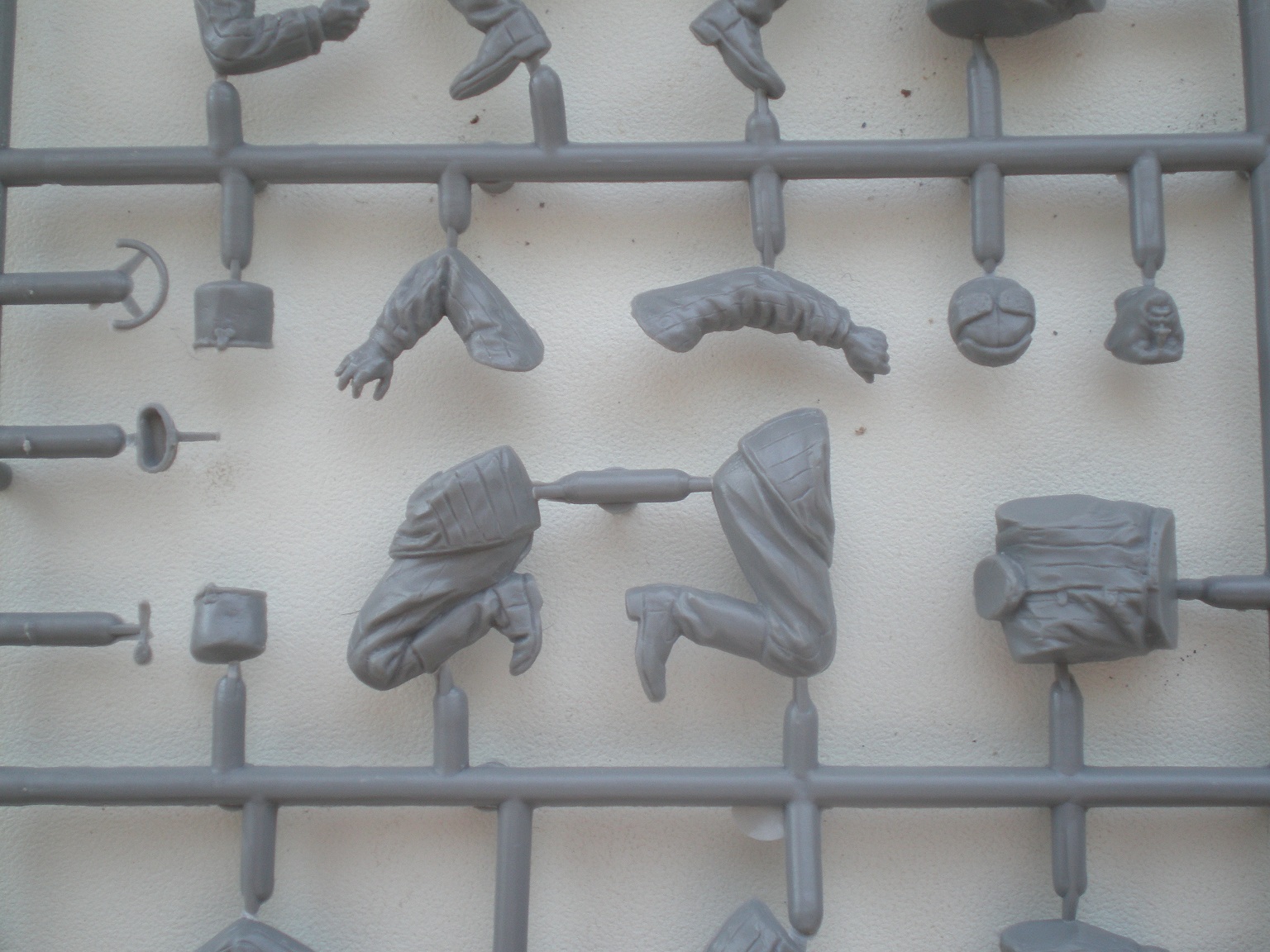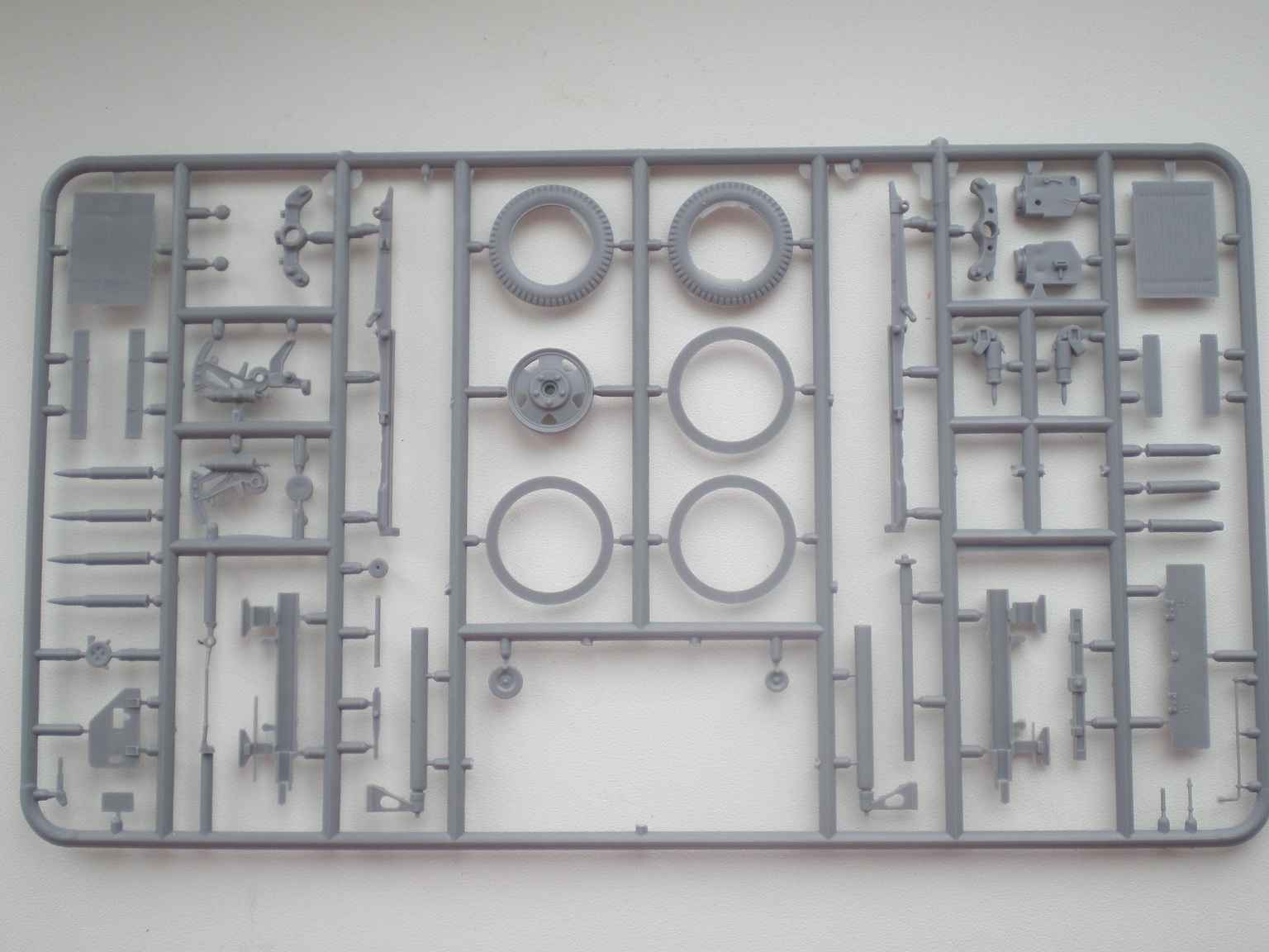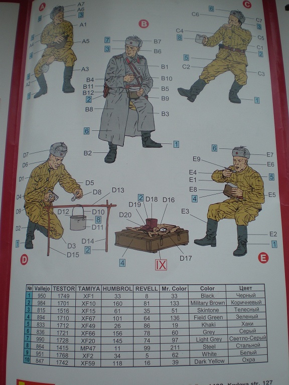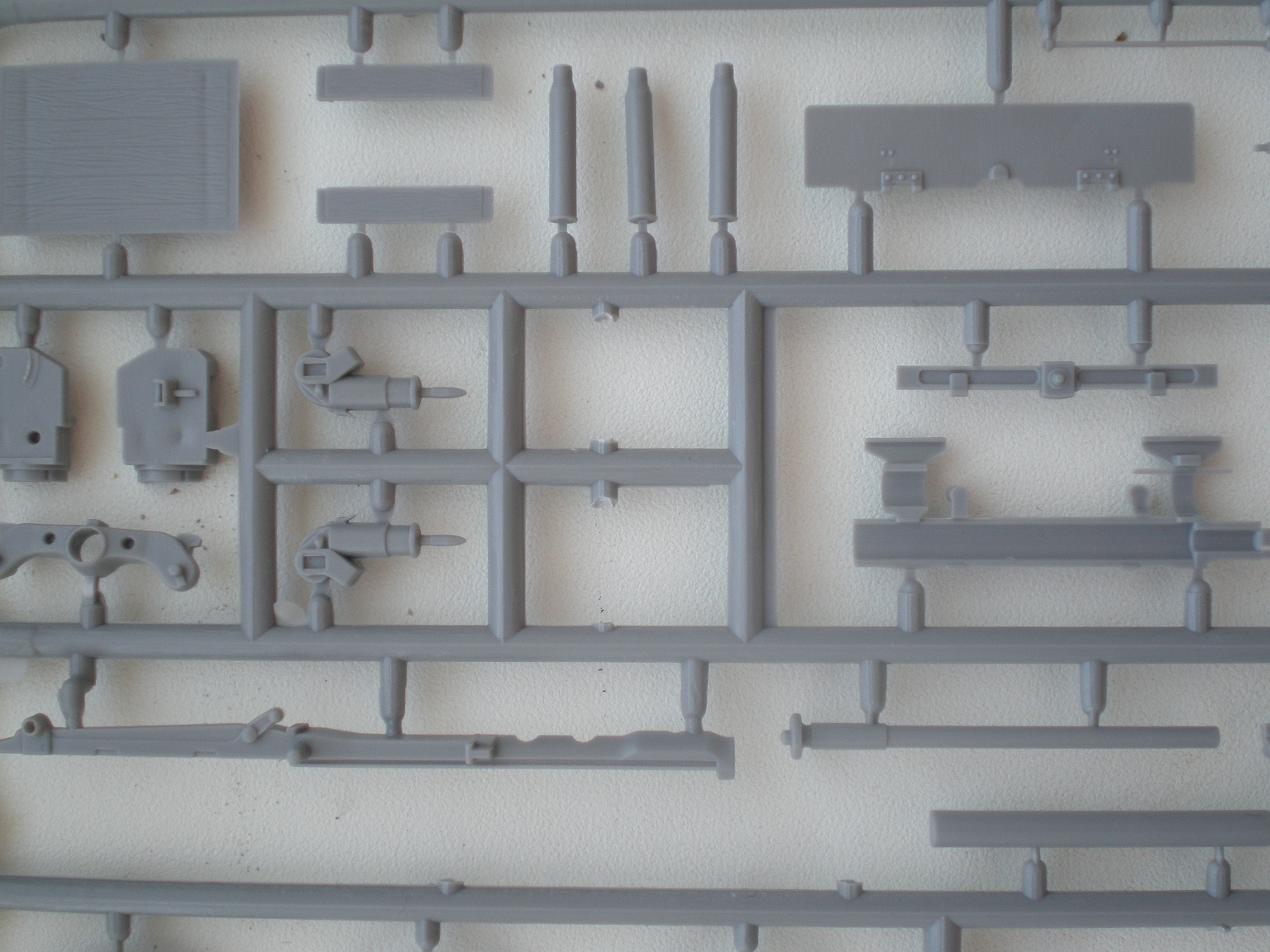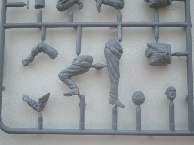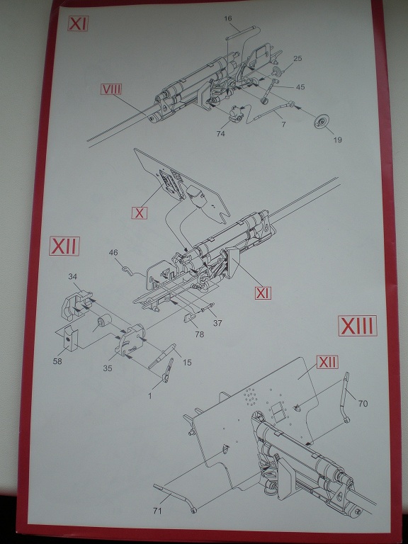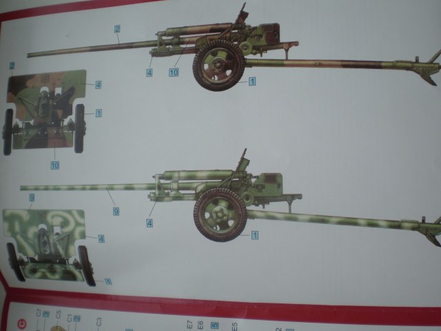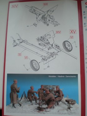 В приятной глянцевой картонной коробке мы находим глянцевую, цветную, подробную инструкцию с двумя схемами покраски. Инструкция хорошо читаема и понятна. Два литника самой пушки и литник с прислугой. На литниках присутствует облой, с внутренней стороны на щите есть след от толкателя. Сама пластмасса на мой взгляд оказалась хрупкой.
