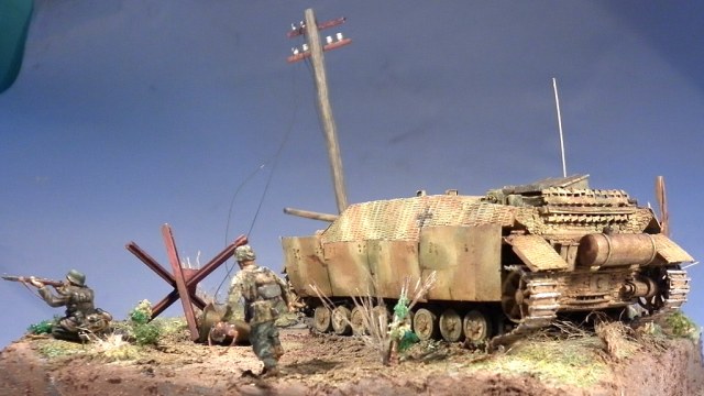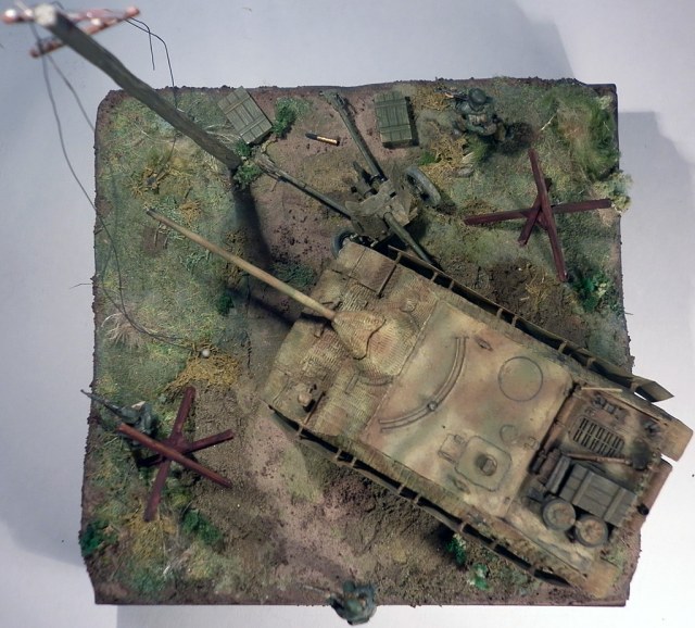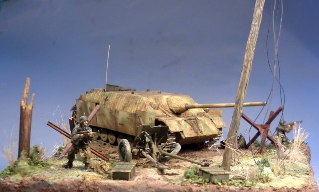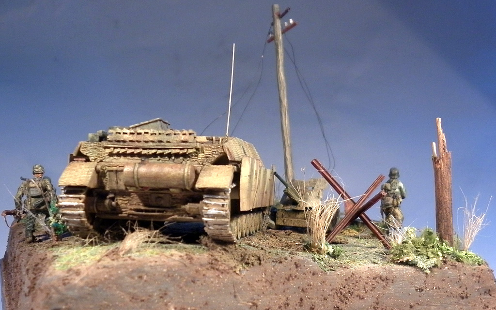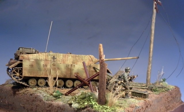 Но соглашусь по поводу размеров - выступание техники за границу диорамки не позволительно - основные требования на выставках . Да и смотрится как обрезаная.