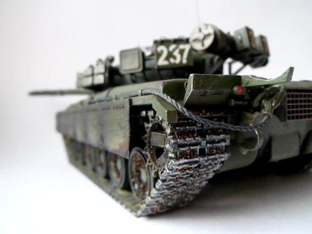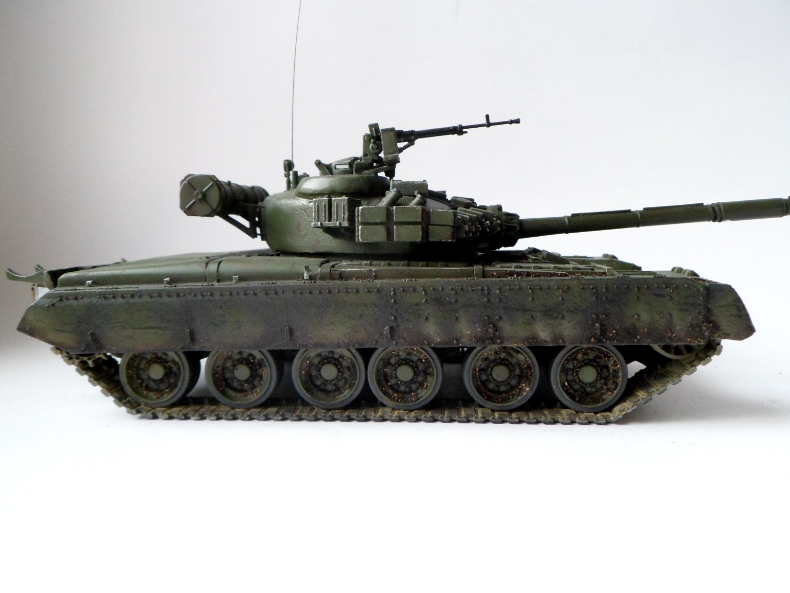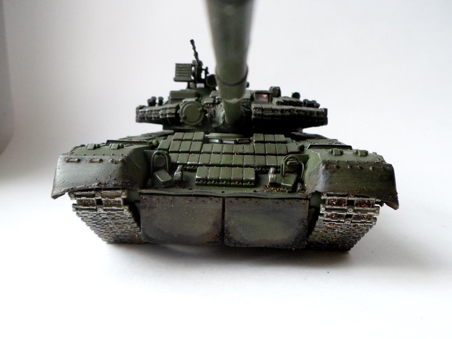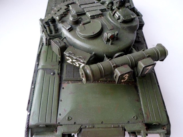 У самого сие "чудище" имеется в коллекции. Для меня главным косяком на то время, когда я его собирал - была башня. С непонятным мне бульбообразным кормовым выростом. Братья китайцы делали модель по фотографиям с космоса в стиле "а-ля залога", по принципу: что красное - то и "ЯВА" (что зеленое - то танк). Они, как всегда в то время, думали, что восьмидесятка - это очередная модификация семдесятдвойки. По этому и башню слепили с этой "грыжей", характерной для семдесятдвойки, т.к. у нее там располагаются элементы автомата заряжания и механизма экстракции стреляного поддона. Скажу прямо - Вам не удалось полностью удалить сей "рудимент"... :-))
