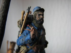 Доброго времени, господа. Выставляю на всеобщее обозрение фигуру POILU 1915 от фирмы «Прапор». Всё собиралось «из коробки», разве, что винтовку переместил и приделал к руке папиросу. Всё красилось акрилом от «Звезды», дерево - обгорелая ветка, земля – гипс. Приятного просмотра.