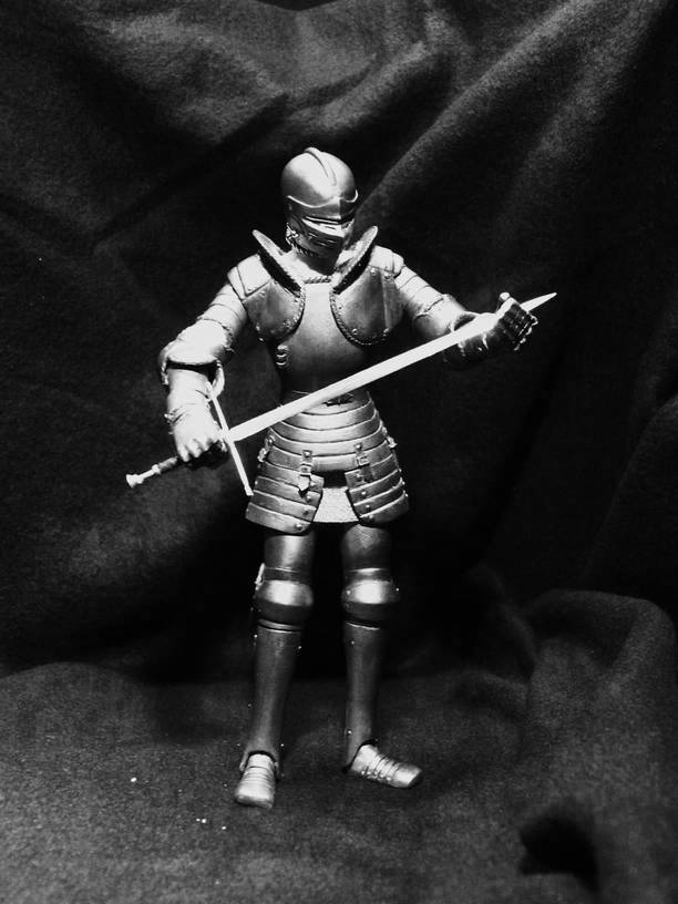 Для следующей фигуры пожалуйста просчитайте масштаб точнее - фигура вышла не пропорциональная и похожа на длиннорукую обезьяну - извините за сравнение , но длина рук превышает допустимое - особенно от локтя до кисти.Также обьём шлема - у Вас же полно литературы , там должно быть описание экипировки - на голову одевался подшлемник, так же как и под доспех одевалось плотное одеяние - во первых чтобы не натирало тело металом , во вторых дополнительная защита. Имейте это в виду и сделайте доспехи по обьёмнее, по шире .