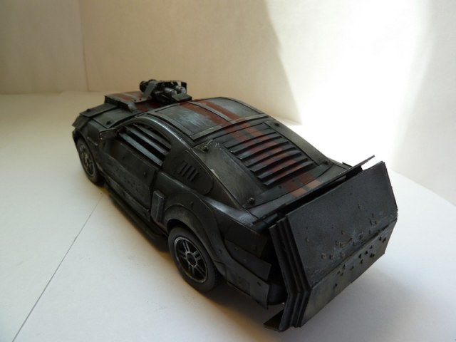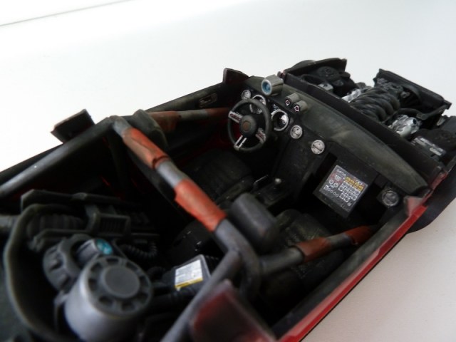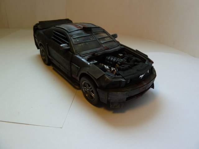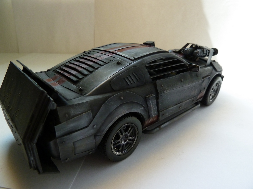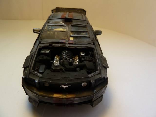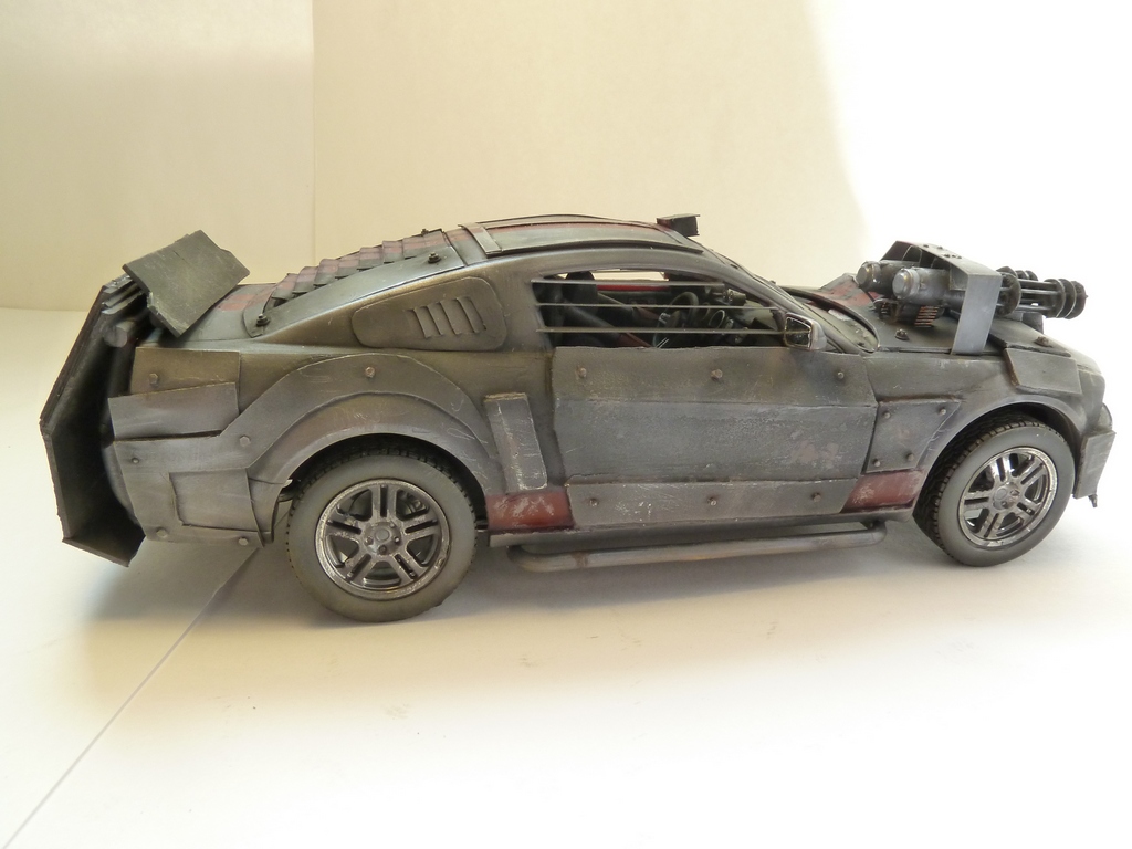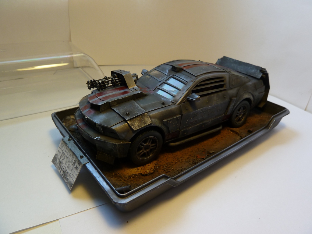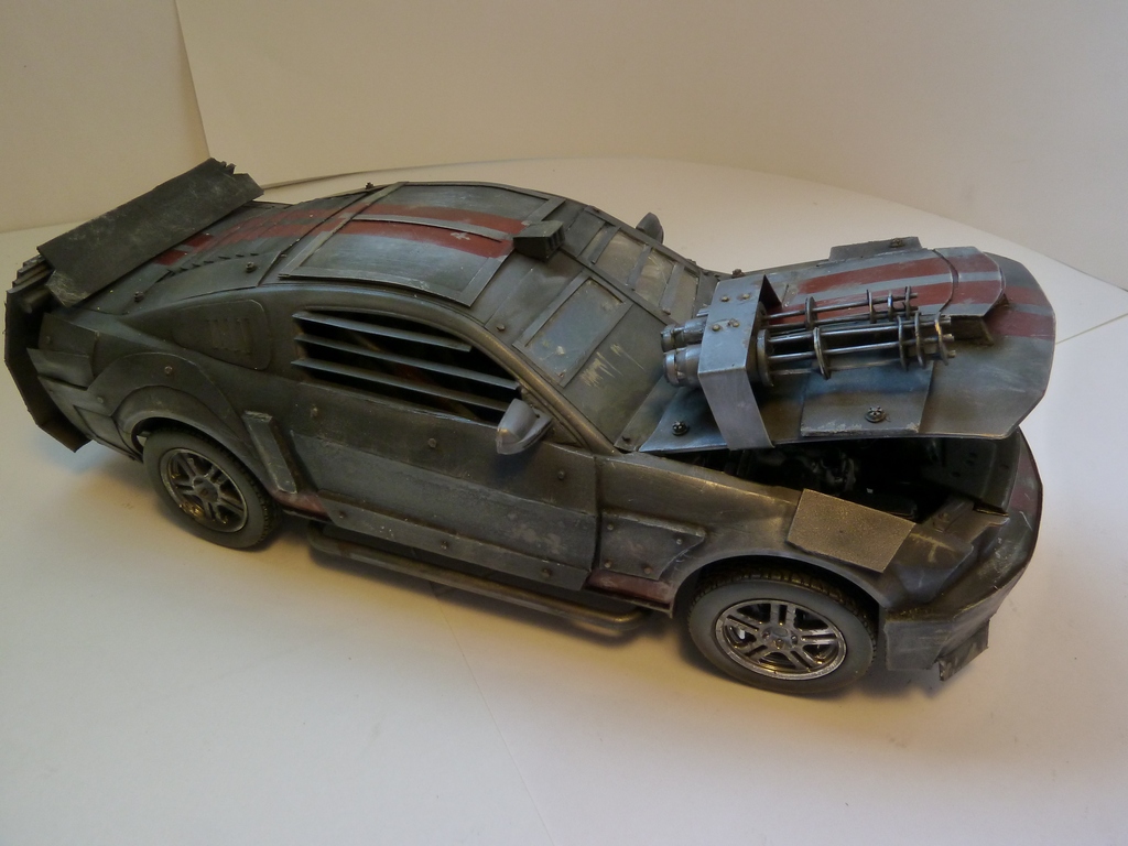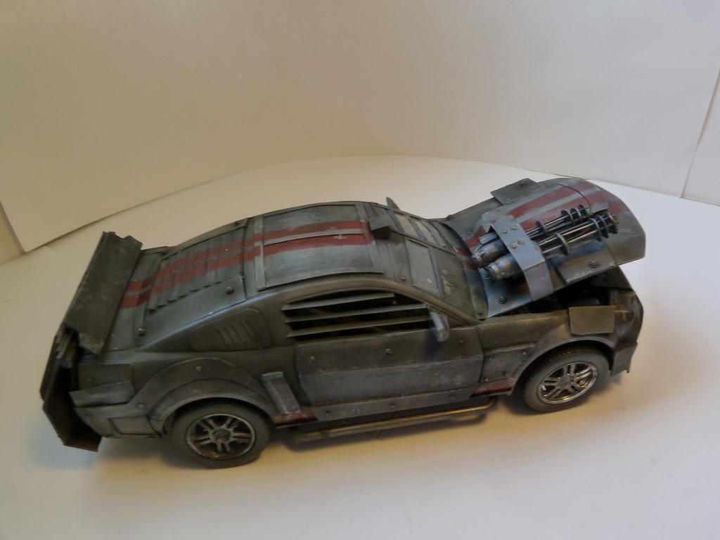 модель-ранний мустанг, еще не доведенный до состояния как в первом фильме.(в салоне больше от серийной машины,я привел фото как оно должно быть,и тк я не смог сделать открываемые двери решил не доводить до такого.)в фильмах встречается ляп с значком мустанга, он то есть, то его нет.