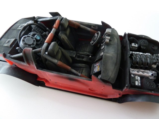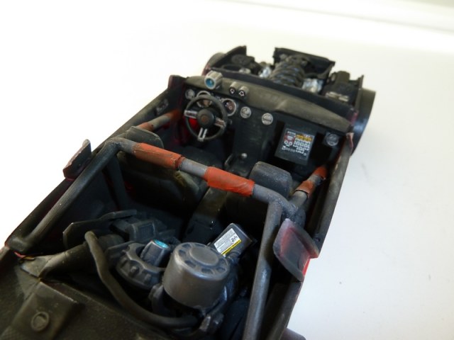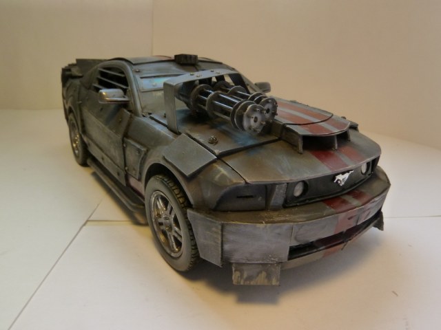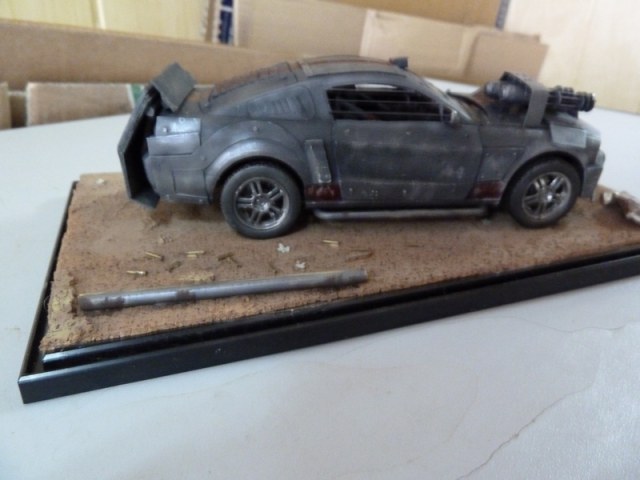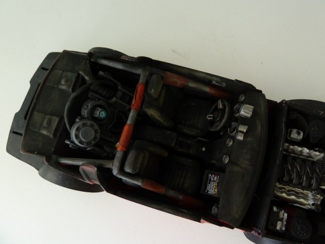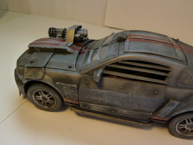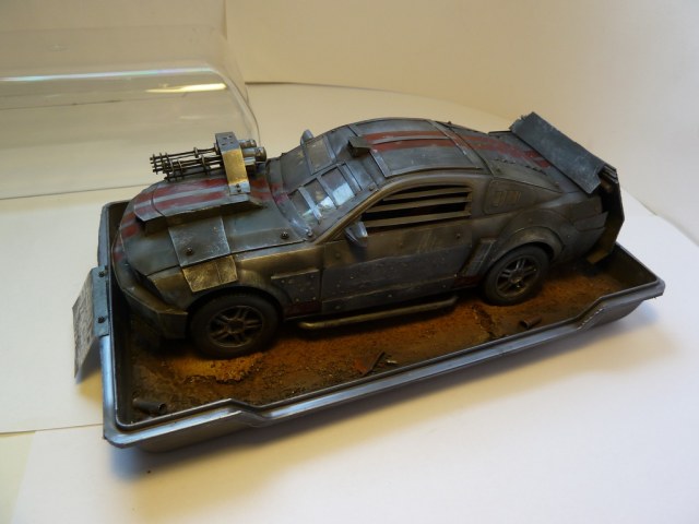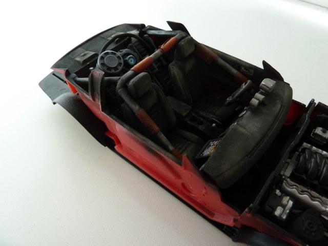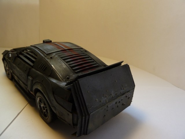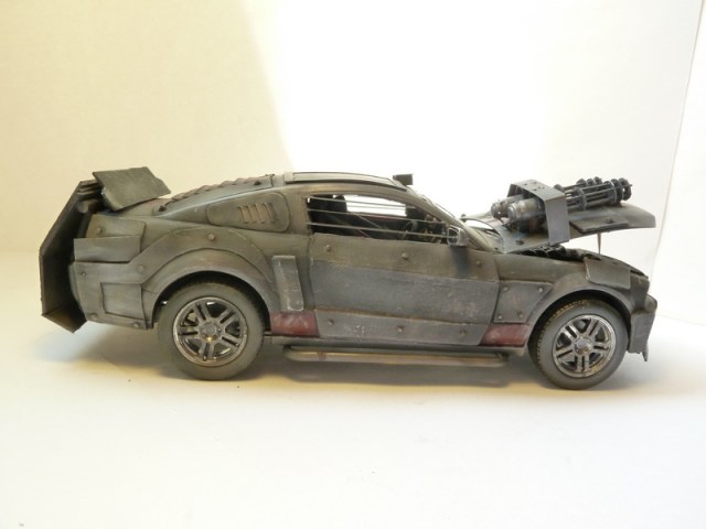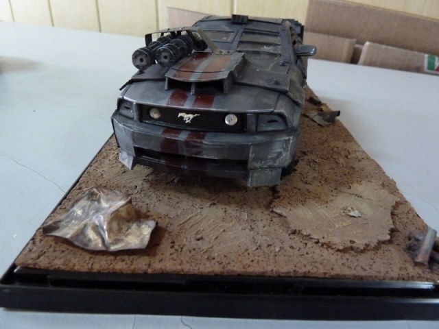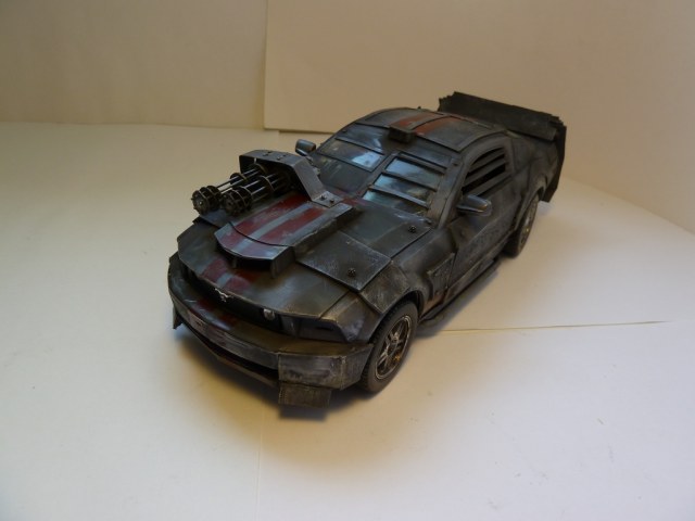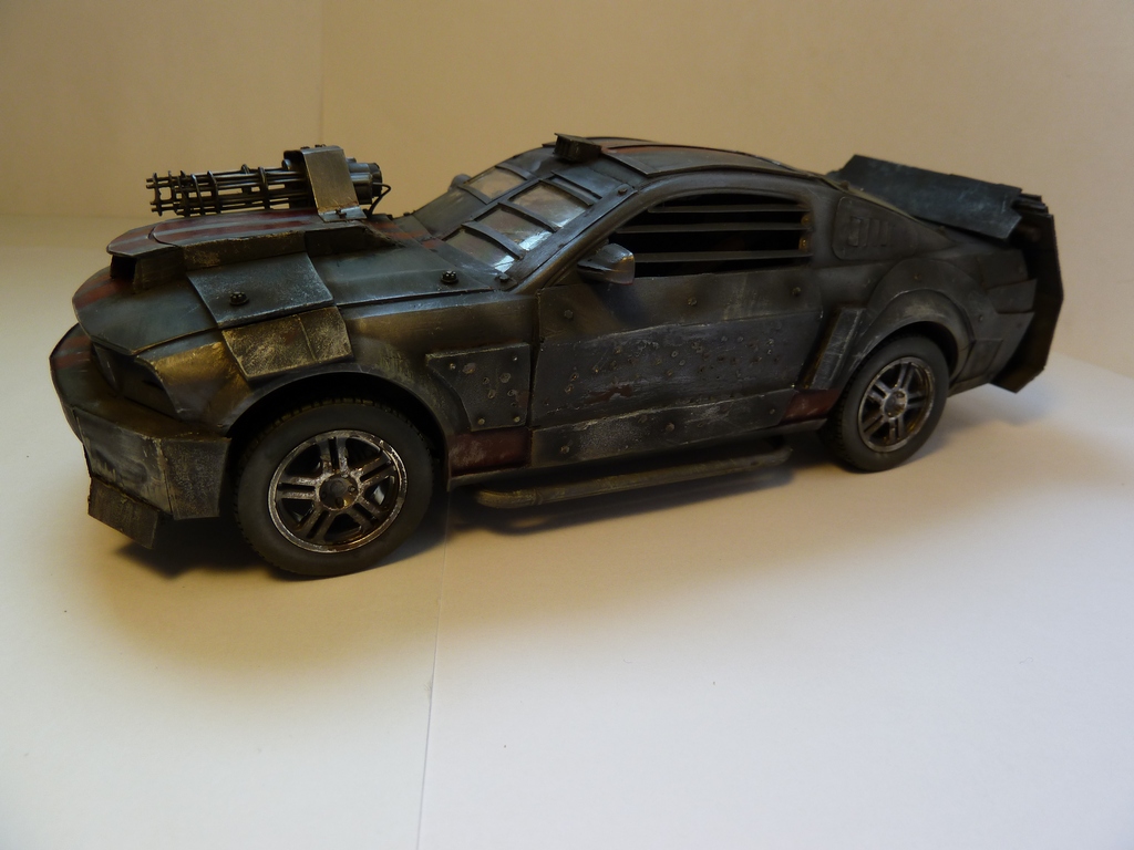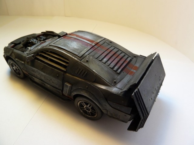 модель-ранний мустанг, еще не доведенный до состояния как в первом фильме.(в салоне больше от серийной машины,я привел фото как оно должно быть,и тк я не смог сделать открываемые двери решил не доводить до такого.)в фильмах встречается ляп с значком мустанга, он то есть, то его нет.