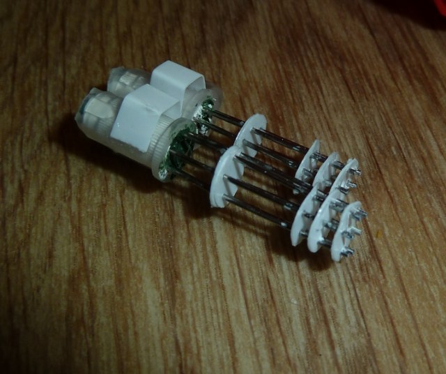 процесс сборки примерно показан на фото, сложнее всего было создать гатлинг-он целиком сделан из медицинских шприцов и их иголок (самый долгий из этапов строительства), фары ELF