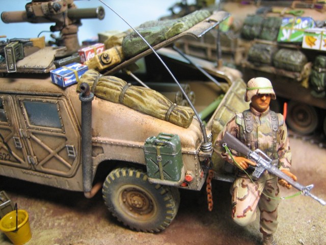 Ух как много всего! Интересно разглядывать, глаза разбегаются, хоть и создалось некое странное ощущение типа: "все супер, но что-то чуть чуть не так" (расположение всей техники и прямостоящие передние колеса у всех хамви) - в целом понравилось! Сколько примерно времени отняла эта работа?