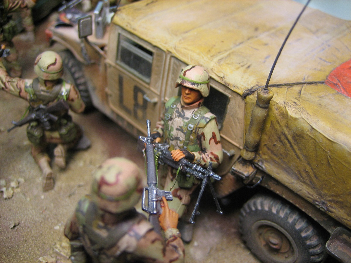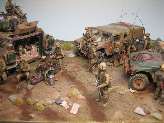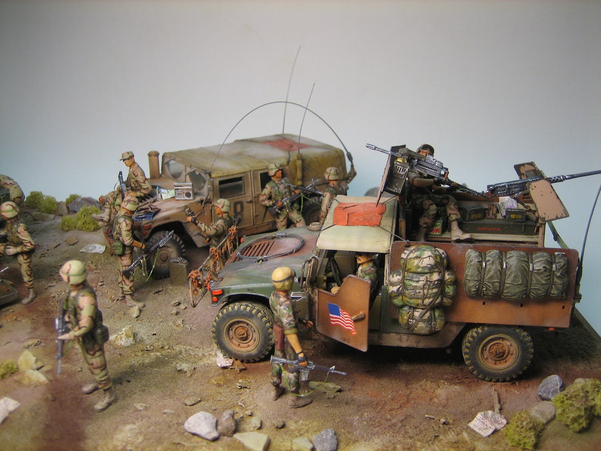 Спасибо всем, всем за отзывы. На счет солдат-манекенов наверное вы правы, просто лежали у меня 2 набора старых ICM солдат, вот нашел куда приткнуть. Вот современные наборы америкосов совсем другое дело, добавлю к ним Хаммер от Бронко, и тогда держитесь