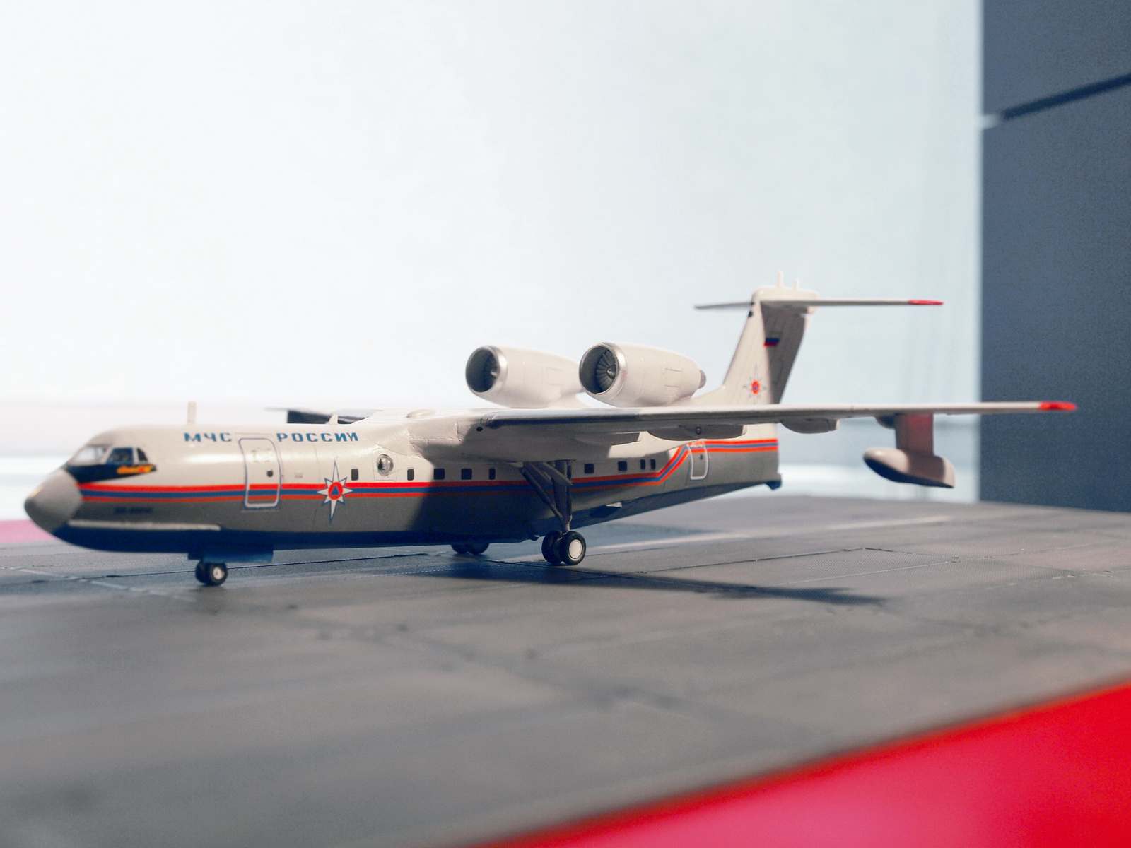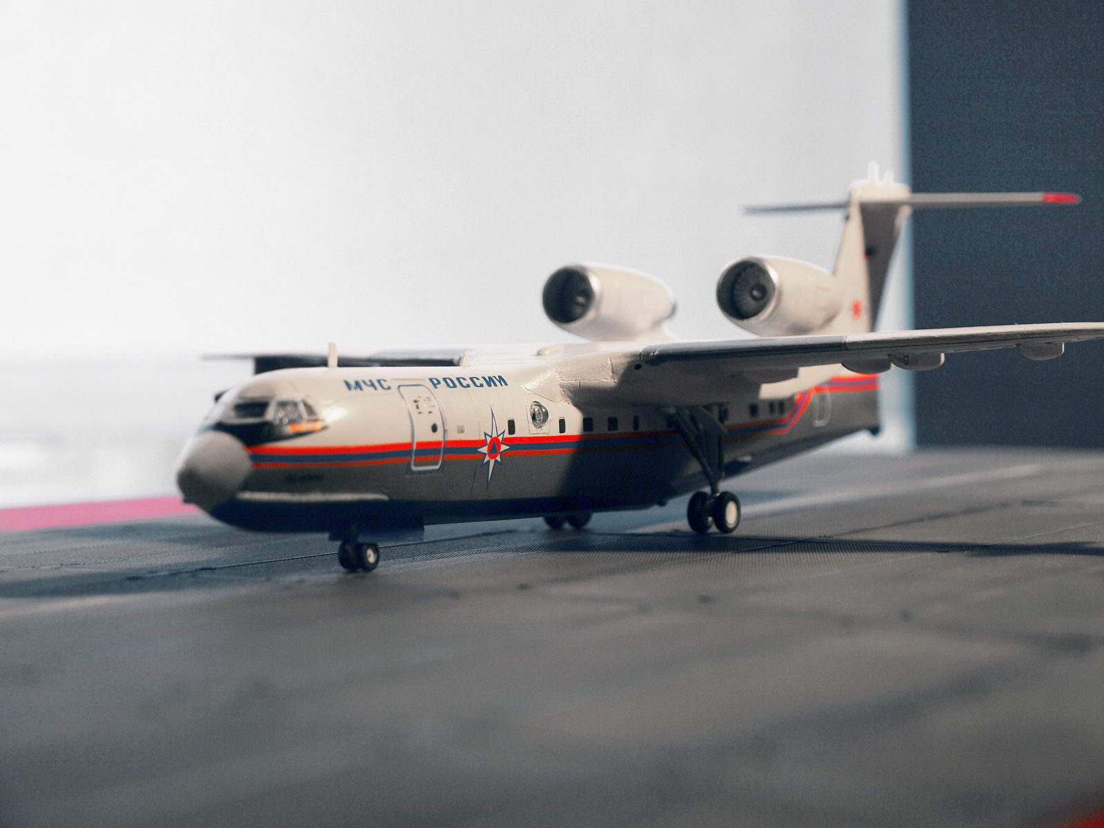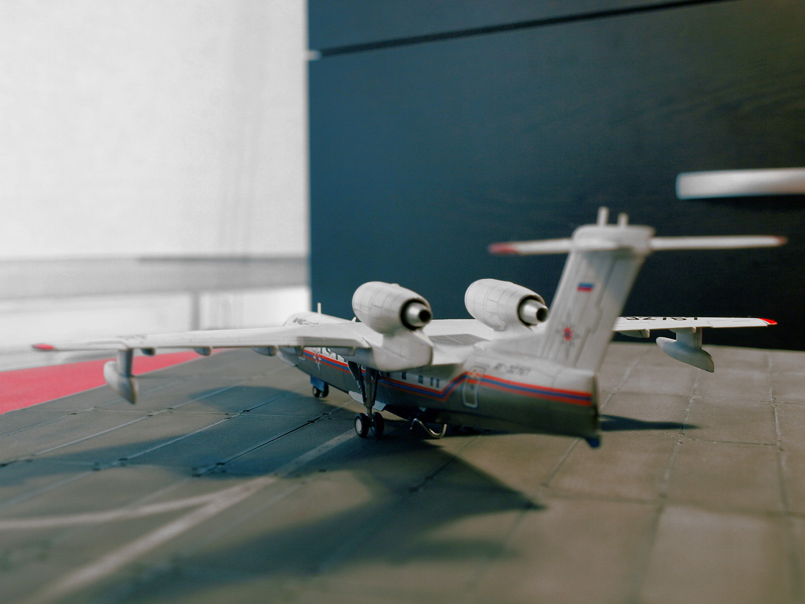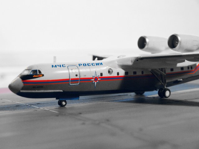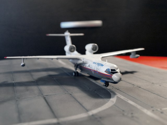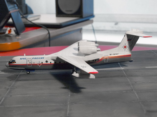 ... как было и с данным экземпляром. Вообще, Бе-200 - очень ожидаемый кит от ВЭ, так как в пластике его больше не делает никто, а смолу переваривают далеко не все. Поэтому, столь непонятно, после таких успехов, как Ил-18, почему качество модели так упало. Возможно, такие проблемы были только с моим экземпляром, но всё же... Главные недостатки - ужасная стыкуемость центроплана, мотогондолы с большими утяжинами, по фюзеляжу и крыльям также есть проблемы. Однако же, при наличии прямых рук, получается вполне симпатичная птичка.