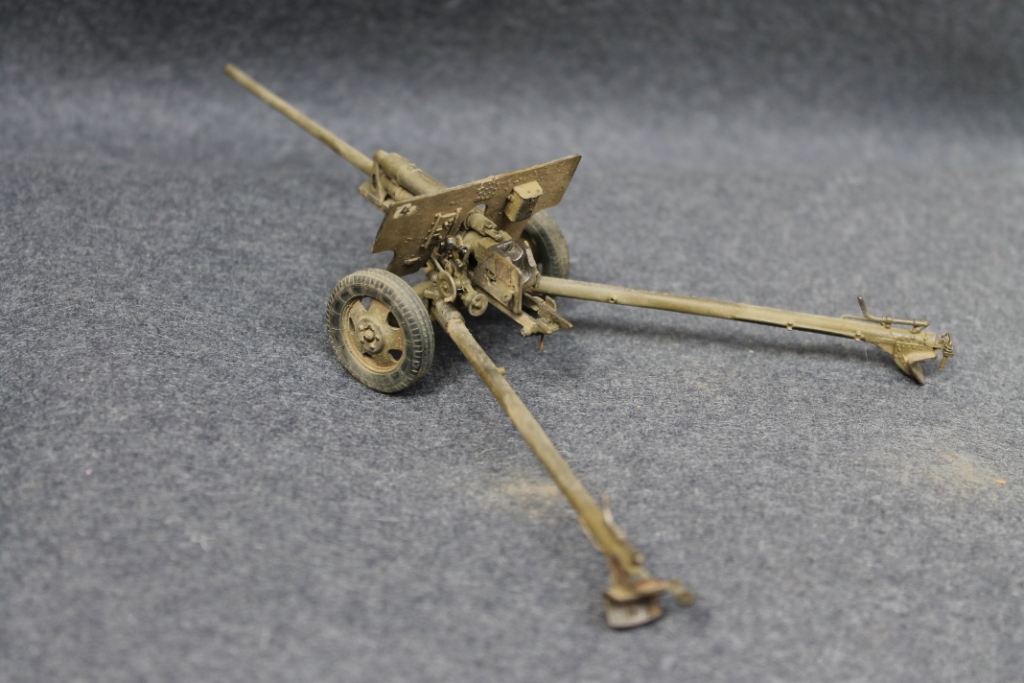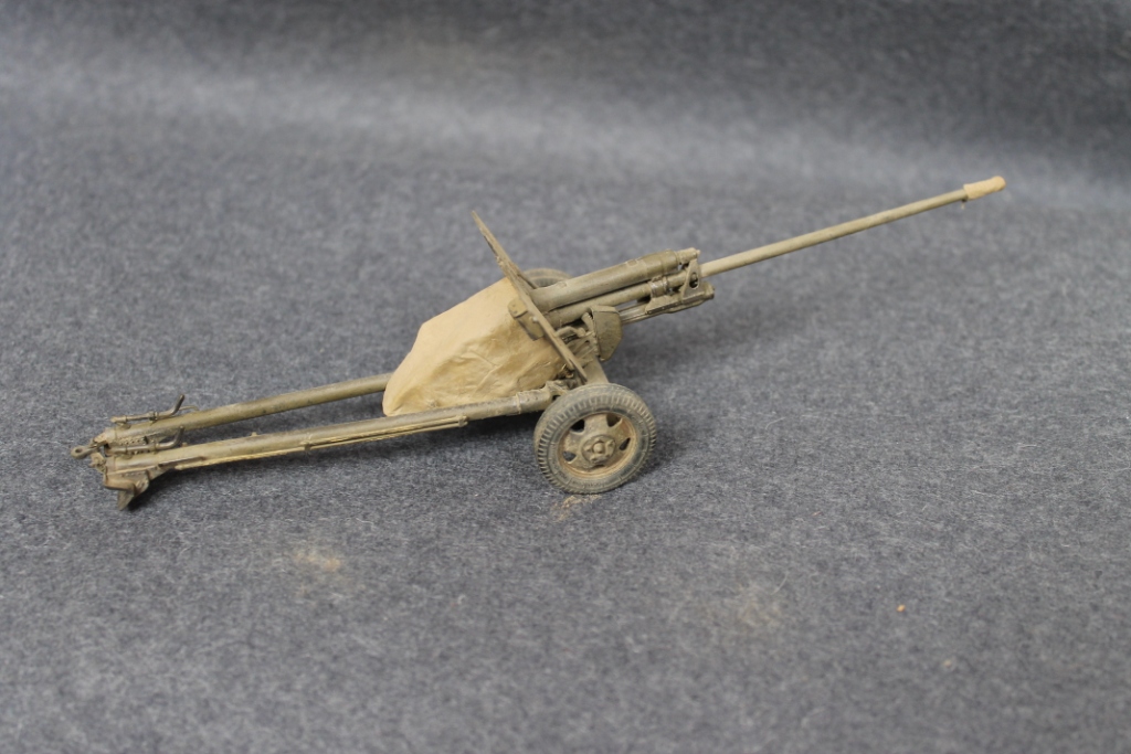 Выношу на ваш суд модель 57-мм противотанкового орудия ЗИС-2. Качество набора неплохое. Однако, присутствуют швы от смещения форм и утяжины. Много хлопот доставила хрупкость этого механизма, множество выступающих частей, которые так и норовят отломаться.