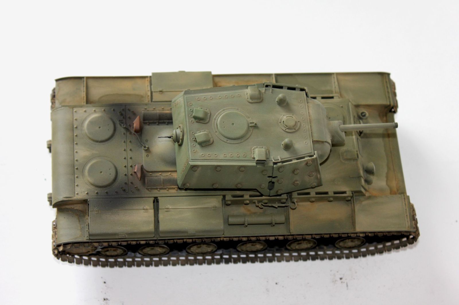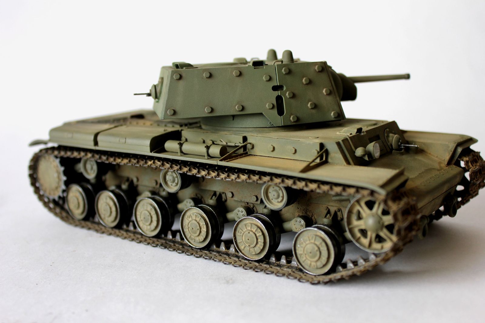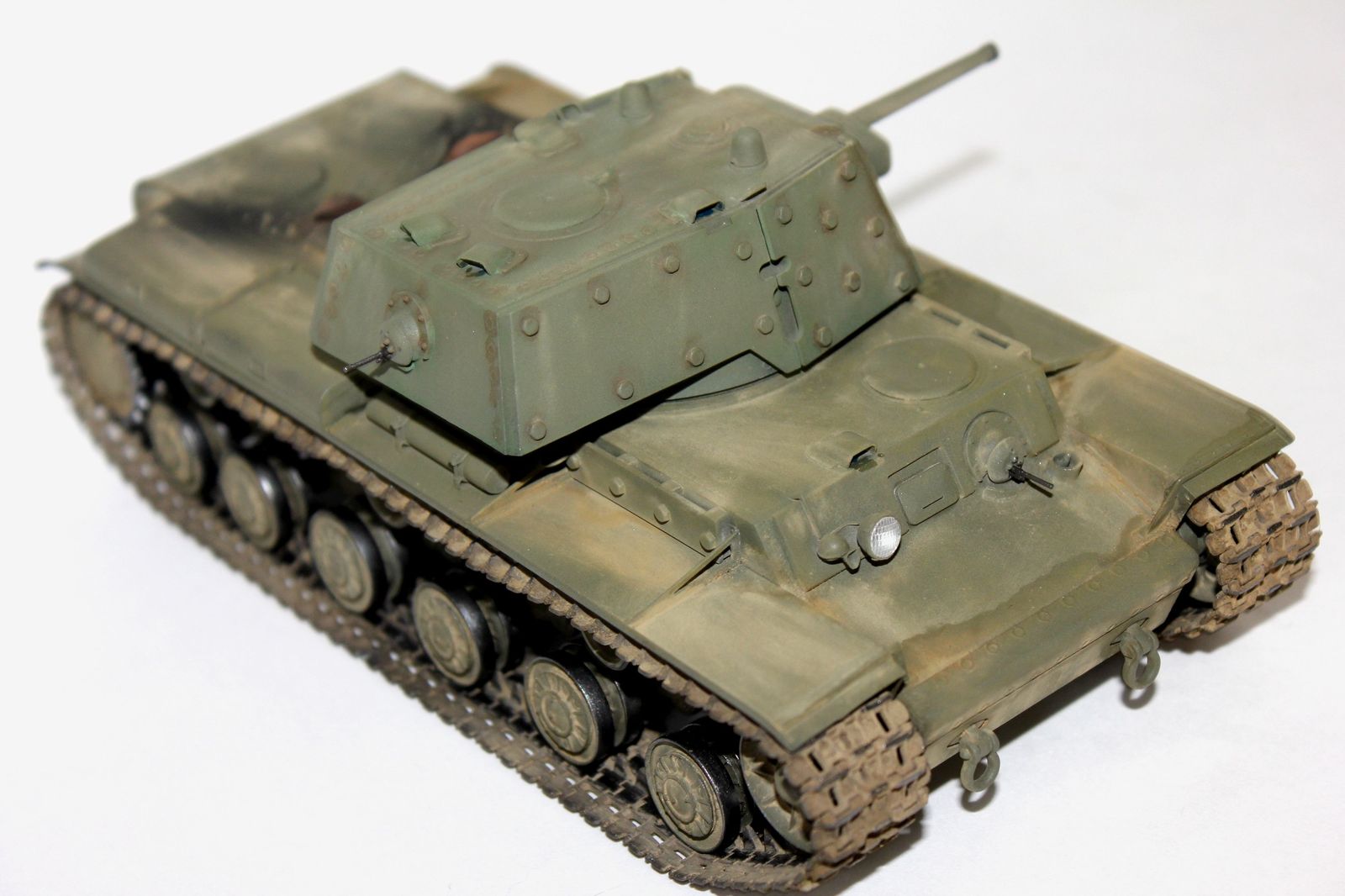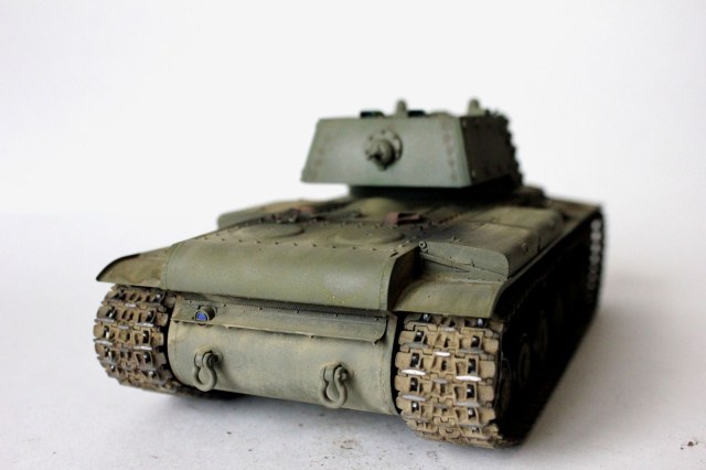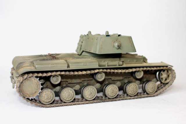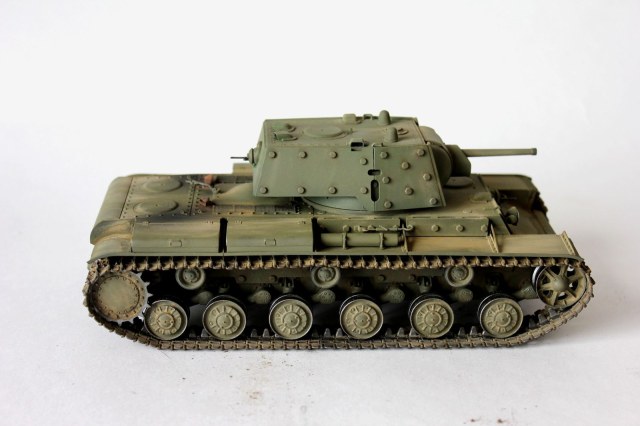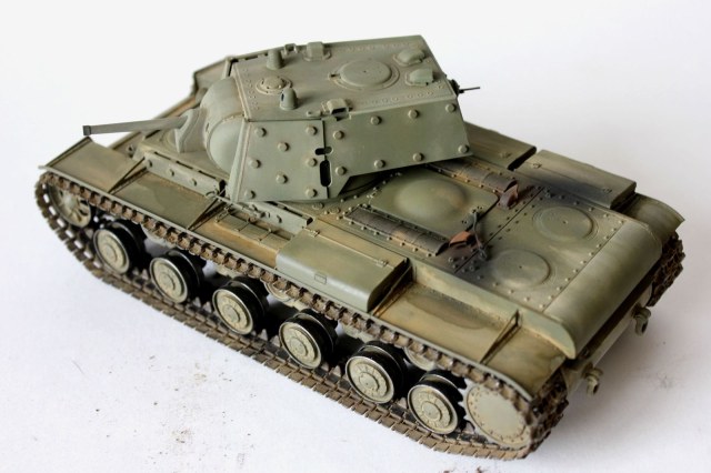 от себя:это вторая модель кв мною собранная,к моему удивлению,качество немного хуже,чем от китайского кв-1(с малой башней).делая модель пытался применить разные техники,что меня и сгубило,в итоге:решил сделать кв после марш-броска.
