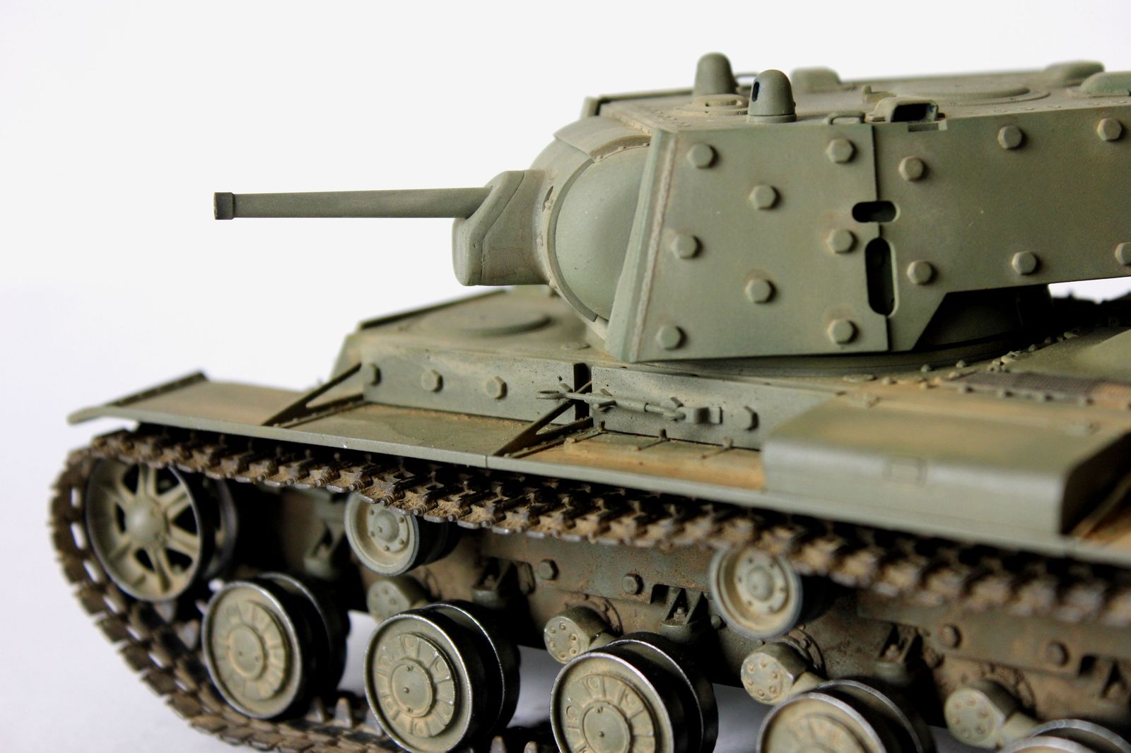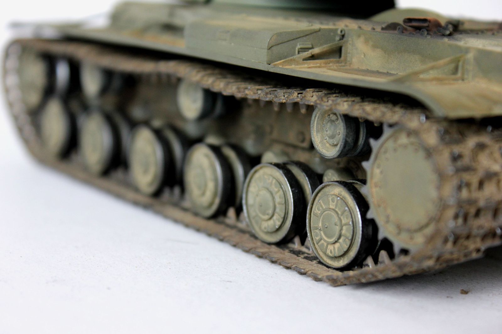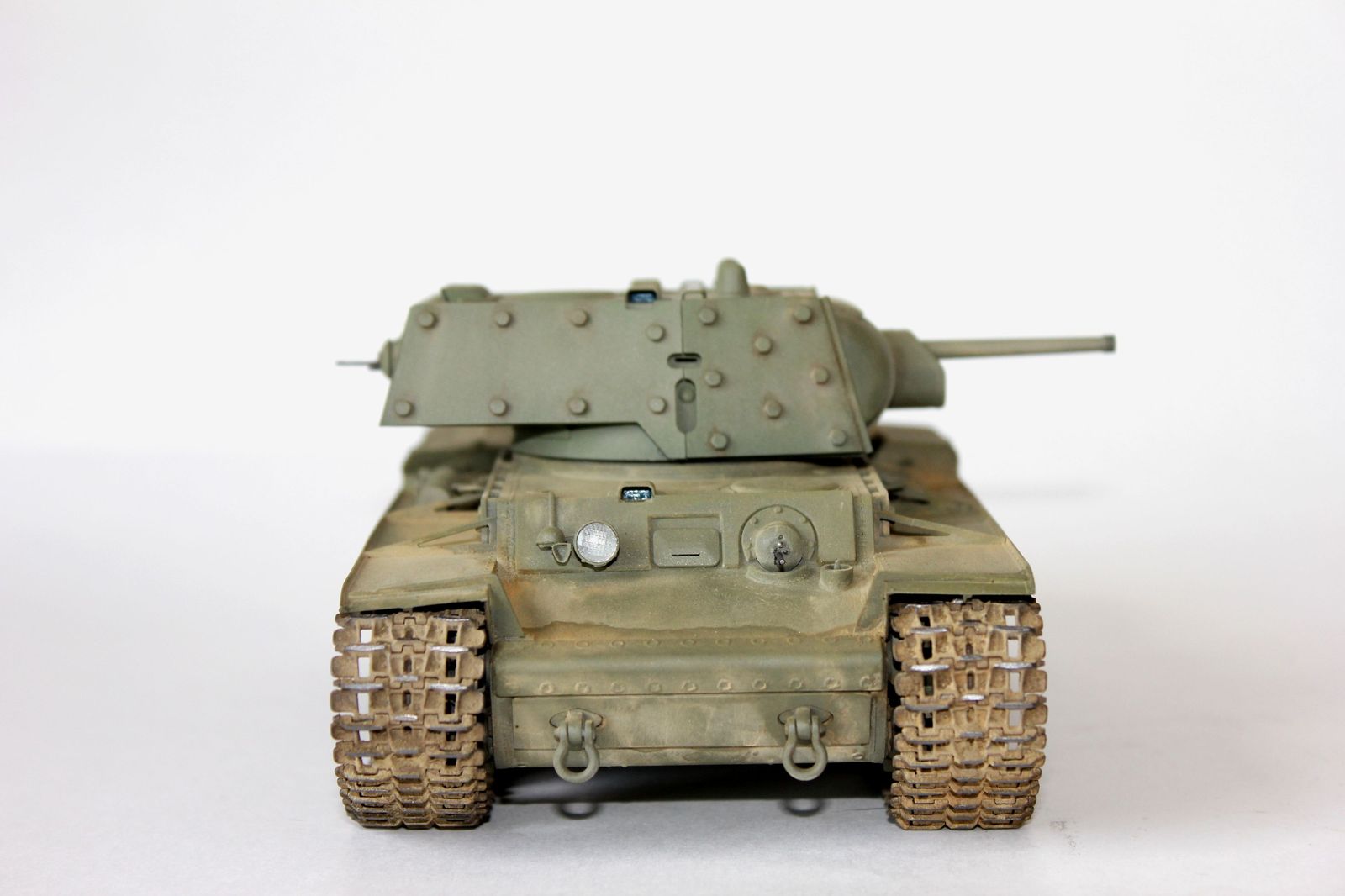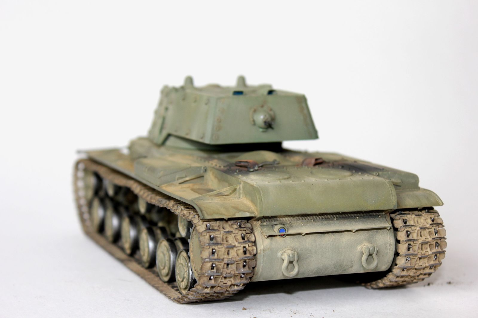 от себя:это вторая модель кв мною собранная,к моему удивлению,качество немного хуже,чем от китайского кв-1(с малой башней).делая модель пытался применить разные техники,что меня и сгубило,в итоге:решил сделать кв после марш-броска.