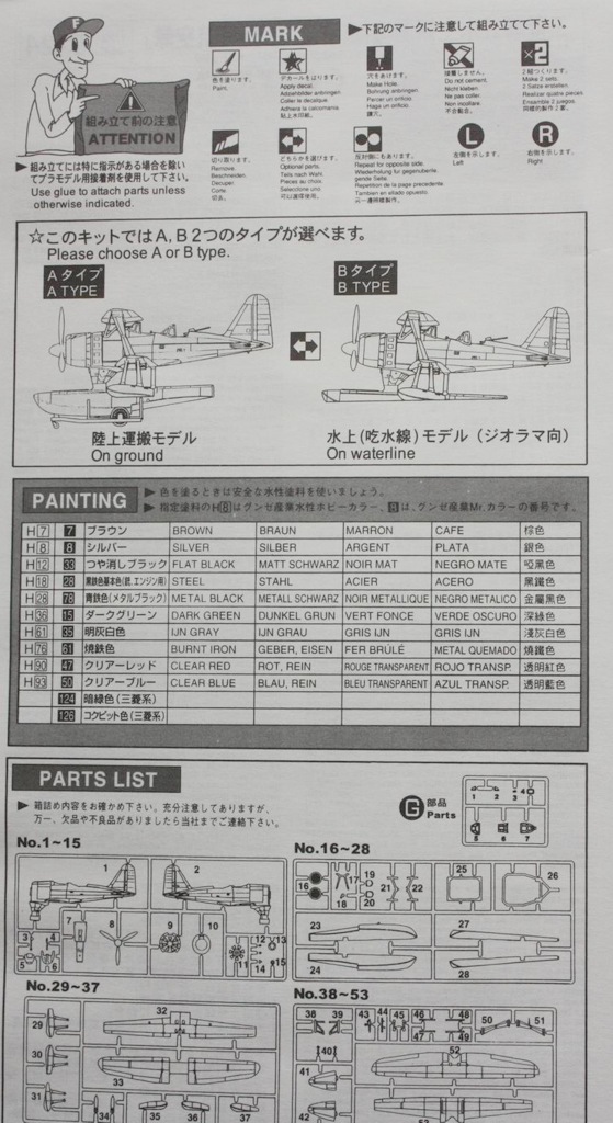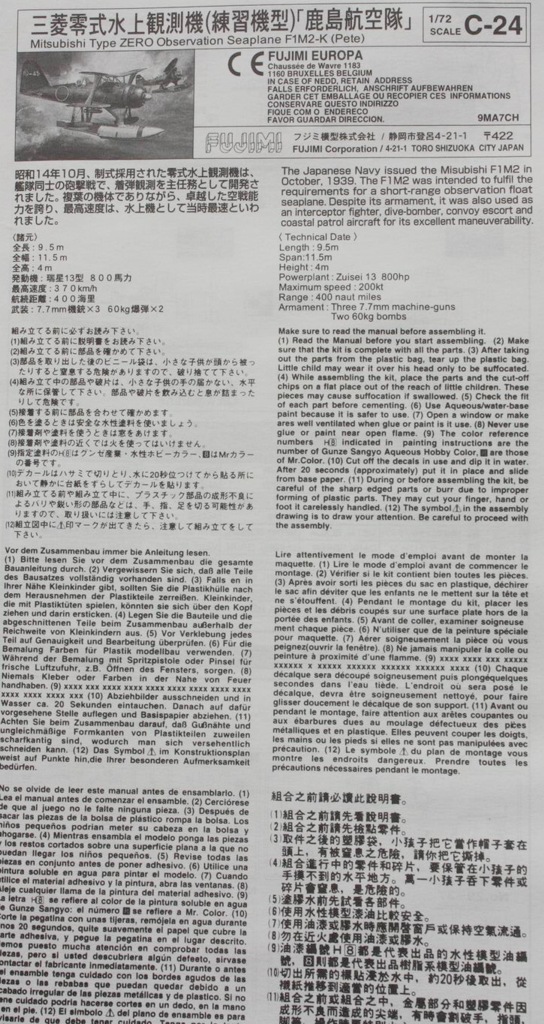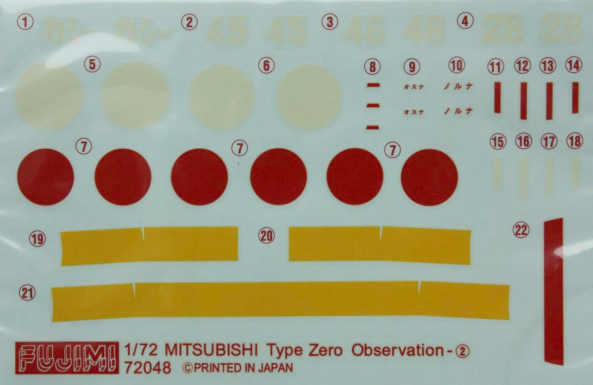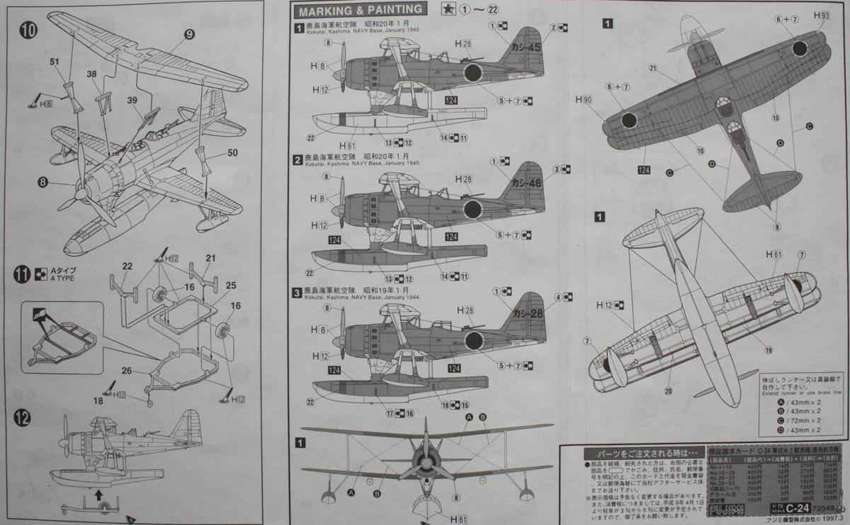 Борис, поменяй название фирмы. Кстати, данный кит в 72-м альтернативы не имеет (впрочем, был когда-то шорт-ран от Aviation USK, являвший собой F1M2). Зато выпускался в куче вариантов. Помимо Training Aircraft Type Kashima Air Squadron имелись еще Observation Seaplane, Observation Seaplane "2nd Fleet", Observation Seapalne Rabaul. Пластик везде одинаков. А в 1/48 известен кит от Хаси.