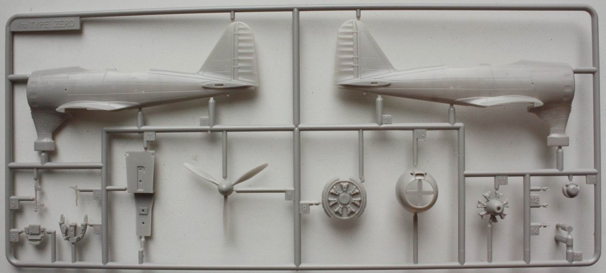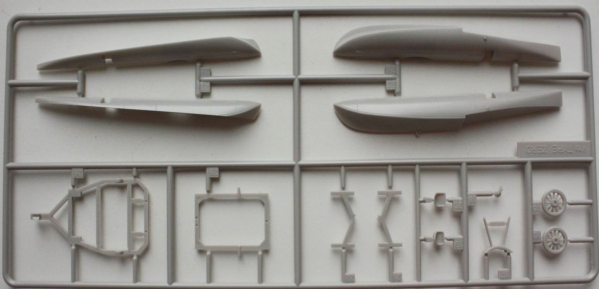 Что-то около 60 деталей из серого пластика, 6 деталей из прозрачного пластика, типично фуджимовская декаль.
