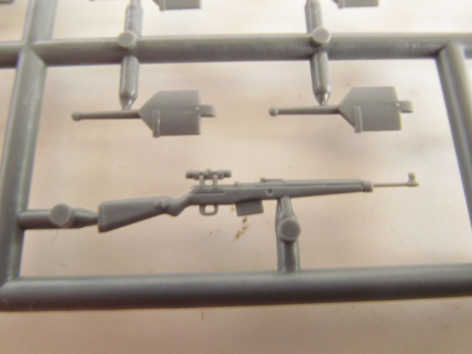 Доброго времени суток, прикупил новинку от МВ. Коробка из характерного для МВ тонкого картона. В коробке лежит 1 литник упакованный в прозрачный пакетик, литник не характерного для МВ цвета- тёмно-серого. что касается самого литника, то детализация неплохая на 4 бала, есть незначительный облой на касках и несколько следов толкателей по всему набору, других дефектов литья не обнаружил. Инструкция, ну тут и дурак поймёт, что к чему. Вердикт таков что если каким то образом вы купили фигуры от старой тамии то можно заменить оружие, ну или это оружие пойдёт для обвеса какого то танка или на крайняк заменить Простую винтовку на снайперскую, или тот же немецкий МП40 на наш ППШ. Приятного просмотра.