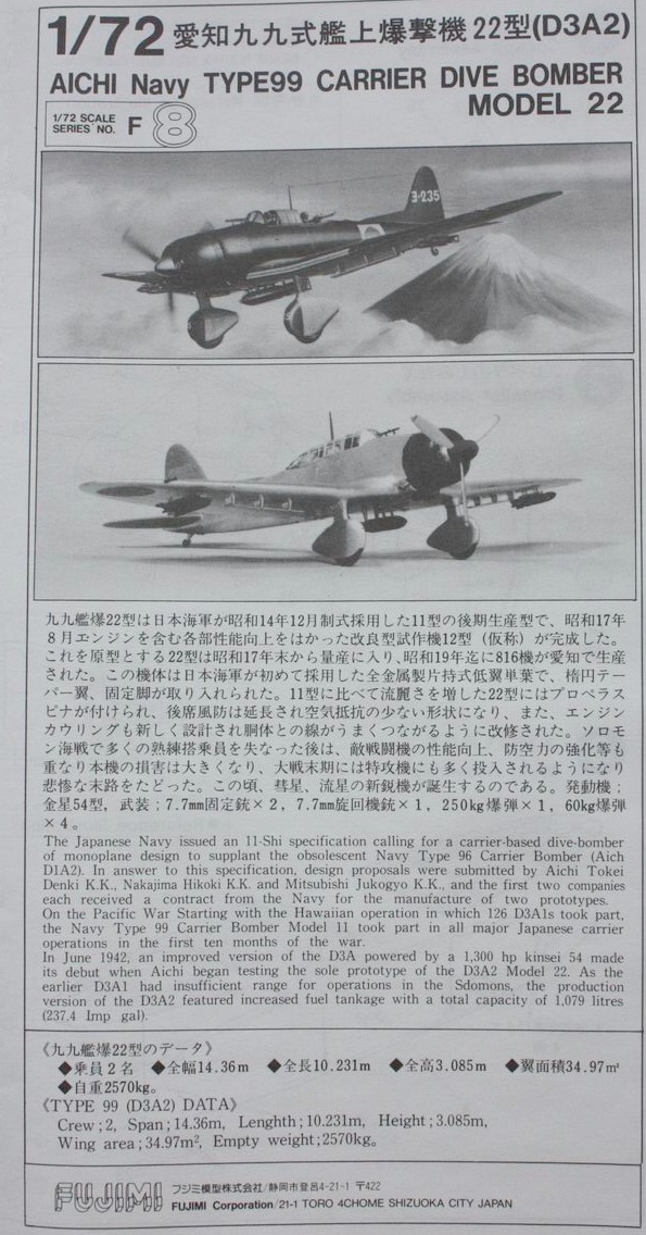 Долгое время абсолютно напрасно пренебрегал этим самолётом, а соответственно, и моделью, признавая только ранний Вэл. Между тем, как выяснилось, поздние Вэлы добросовестно отвоевали в обоих авианосных сражениях 1944 года, и в Филиппинском море, и у Лейте. После переоборудования гидроавиатранспортов Читозе и Чийода в полноценные авианосцы выяснилось, что получившиеся у них полётные палубы катастрофически коротки для Джуди, нового пикировщика, поэтому на этих авианосцах в качестве пикирующего компонента были Вэлы.