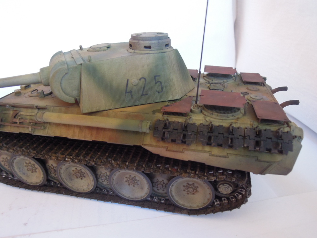 Привет Коллеги! Вот допилил пантеру от драги, известный набор с циммеритом № 6428. Со сборкой проблем не возникло. Исторической привязки нет, бортовой номер из головы. Модель была дополнена металлическими траками friul, травлением от грифона и по мелочи. Троса делать не стал, не было нормальных под руками. Окрас тамиевский акрил, миговские пигменты, смывка и фильтры, масляные пятна от wilder. Критикуйте сколько влезет.