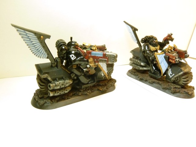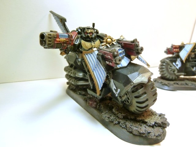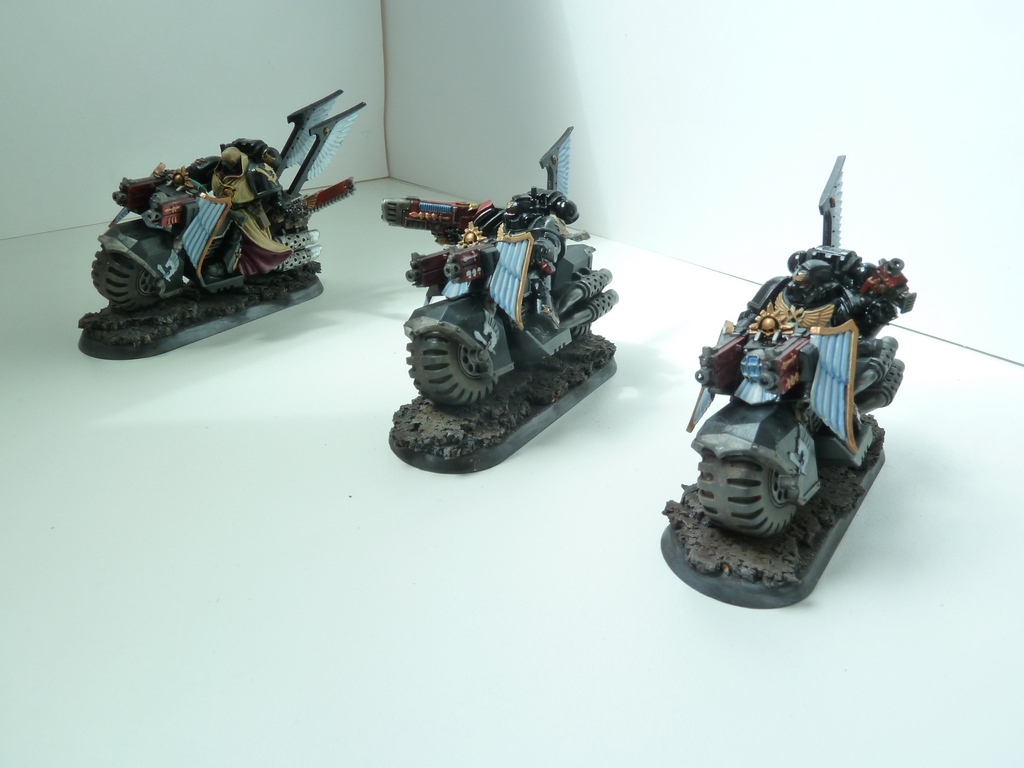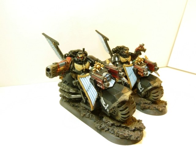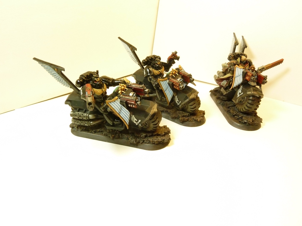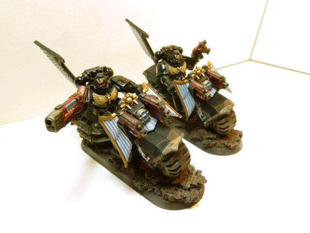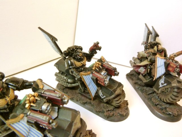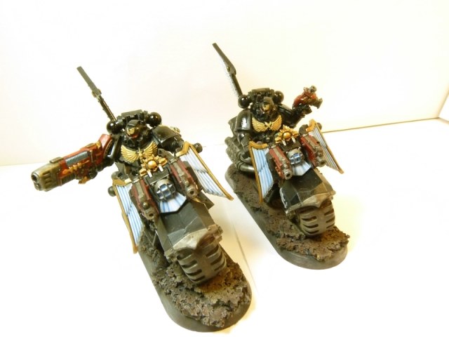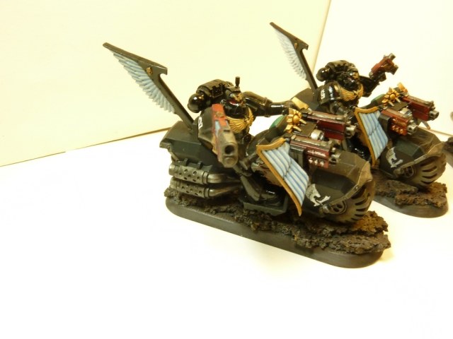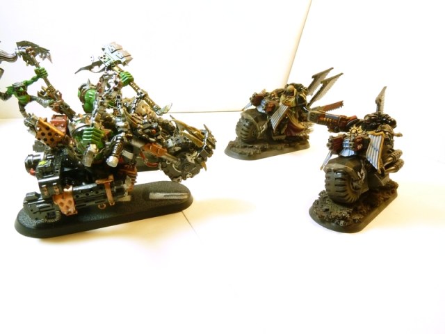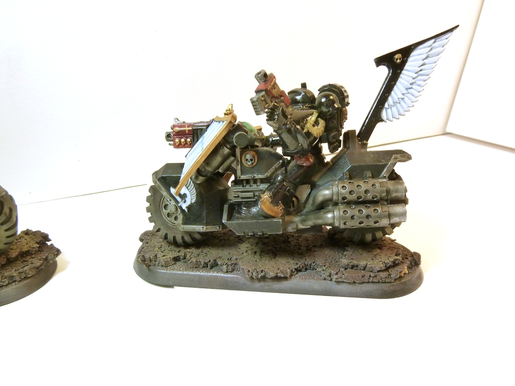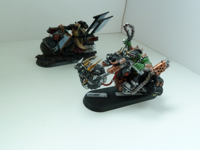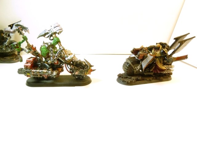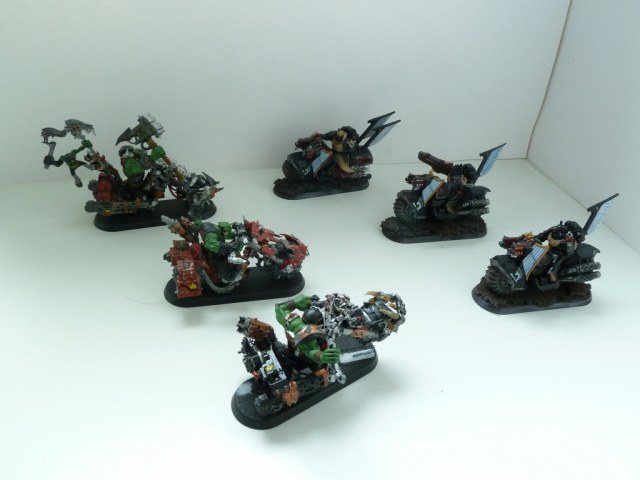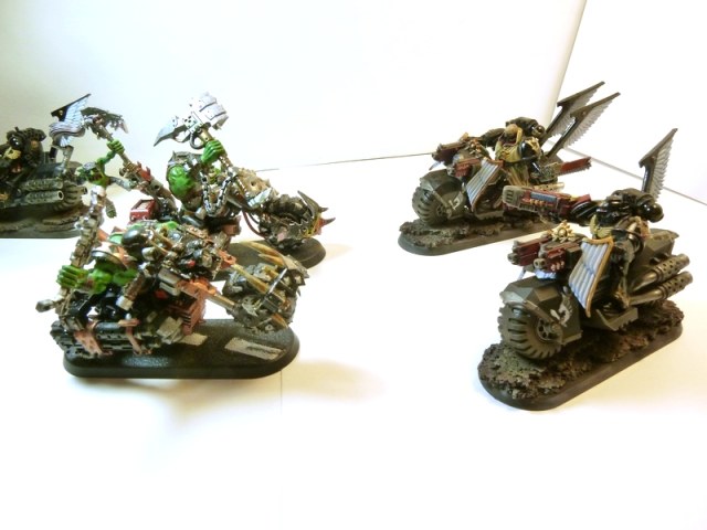 добрый день всем! решил вернуться к фигуркам. отряд воронокрылых(теперь такое официальное название) из набора темная месть. красил цитаделью и валледжо, лак валледжо-сияет как зеркало. подставки из пробки.ради интереса сравниваю с орками с которых я начинал свое знакомство пару лет назад с вархаммером=)