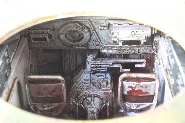 Странные вы какие то. Один сказал круто и все давай повторять. Модель хорошая, для галереи самое то. Она склеена и покрашена хорошо, но ничего такого - ВАУ, СУППЕР - в этой работе даже и не пахнет. Странное сочетание чистой техники и грязи. Колеса вроде как и грязные, а гусеницы только с завода. Шансовый инструмент так и блестит на солнце, а пулеметы своим блеском дают понять, что им уже не один год. Сколы на технике есть везде, кроме тех мест где им положено. Гусеницы, если присмотреться, на катках не лежат, а провис почему то имеют (третий и четвертый каток на третьем фото, прижать навеное было ну очень трудно?) Ну а интерьер... раз уж ты взялся делать смывки и подтеки, то мог бы и для интерьера взять. Выглядит очень стремно. Если у тебя интерьер настолько убит, то почему так НАСТОЛЬКО чист? Работа на 4, но не больше. Это моя критика. У меня сложилось такое чувство, что автору дали краски и химию, а работать с ней он просто не умеет, захотелось ему, так сказать, все что есть намазать на танчик.