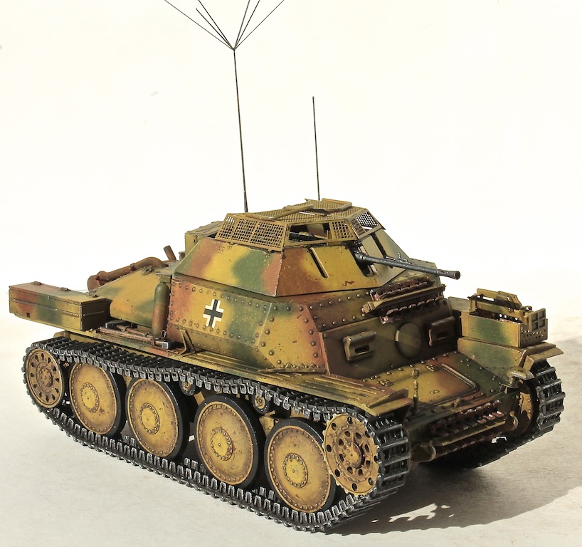 Разведывательная машина на базе танка Pz-38(t). Делал из коробки с незначительными дополнениями. Набор замечательный. Особых дополнений не требует. Сборка отличная. Уровень Драгона.