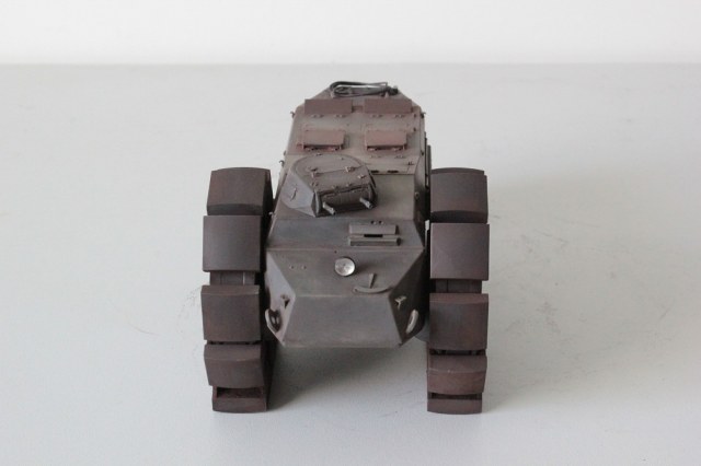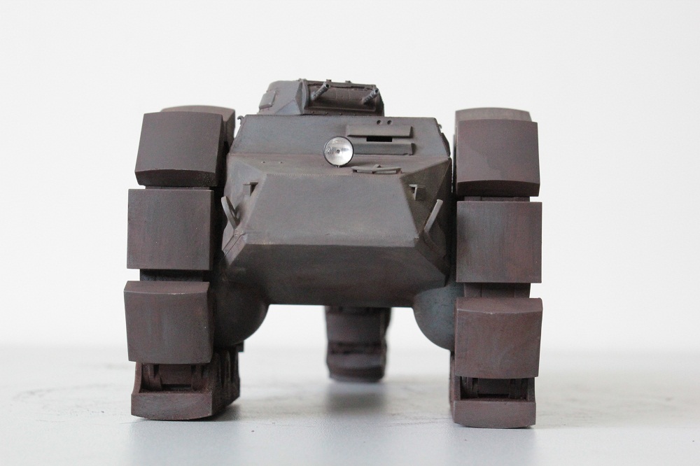 Сборка модели не составляет практически никакого труда за исключением траков и башмаков – наличие глубоких двусторонних утяжин заставило вдоволь поработать со шпатлёвкой и шкуркой. При выборе окраса остановился на однотонном сером с применением фильтров. Кому-то окрас может показаться скучным, кому-то – никаким, но мне эта машина представляется именно так.