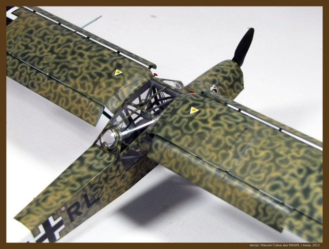Согласно собранной мной информации, камуфляж данного прототипа был совсем не такой, как указал производитель (по песочному RLM79 голубые "змейки" RLM78). Оказалось все проще - "змейки" были RLM79 по стандартному RLM70/71/65. Фото это подтверждают.