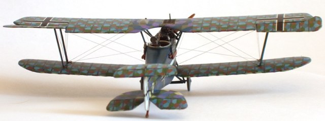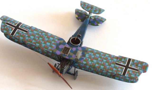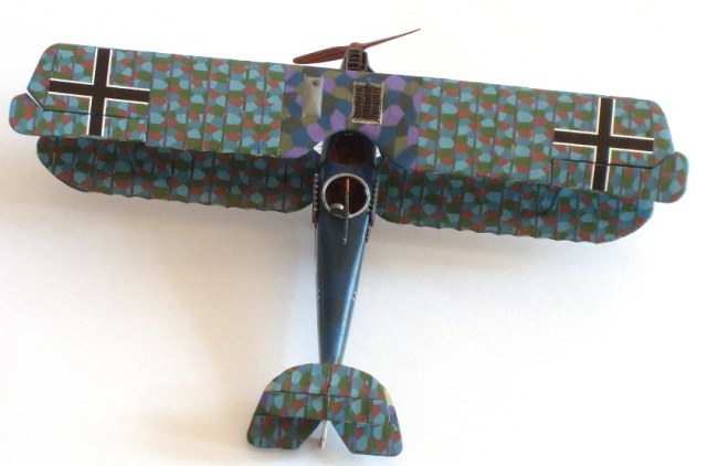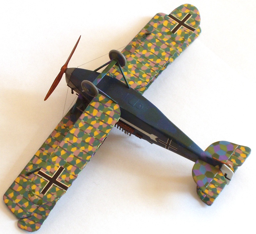 Наклеил лозенг на крылья и стабилизаторы. Хватило впритык, т.е. в ноль, одни обрезочки остались. Давно не сталкивался с такой «дубовой» декалью! Не помогали никакие размягчающие средства, на деке ещё в воде появлялись трещины. Хорошо, что перед оклейкой задул деки лаком. Приличный результат, в который раз, показал «парфюм». По окончанию нанесения задул лозенг лаком и кистью поправил трещины и места, где лозенг выкрошился. Потом «киперка» (из неправильного лозенга от Сименс-Шукерта от ВЭ)