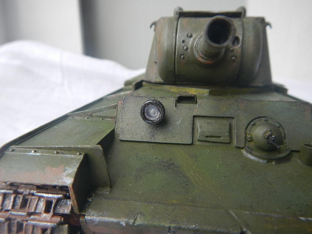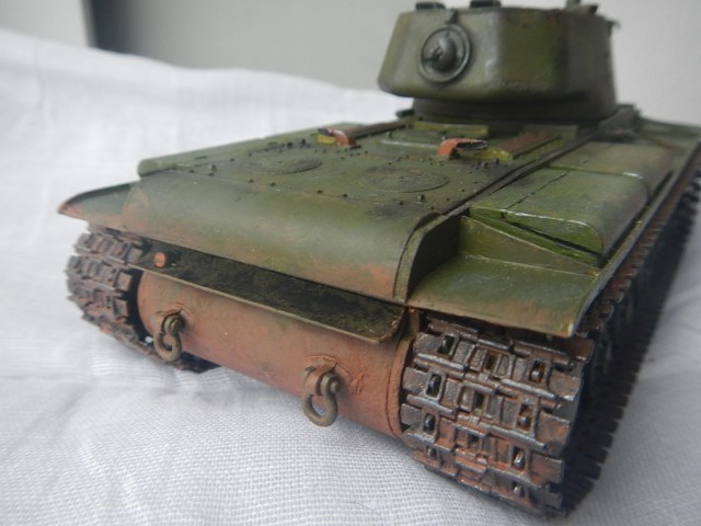 Думал что собирать и выбрал его. Собирал месяца 2-3. Из дороботок попробовал сделать стекла в приборах на башне, в фаре сделал лампочку, еще скрутил тросы, но не покрасил их, поэтому не прикрепил их, гусеница от КВ-1 "Звезда". Без какой-либо привязки. Что скажете, уважаемые?