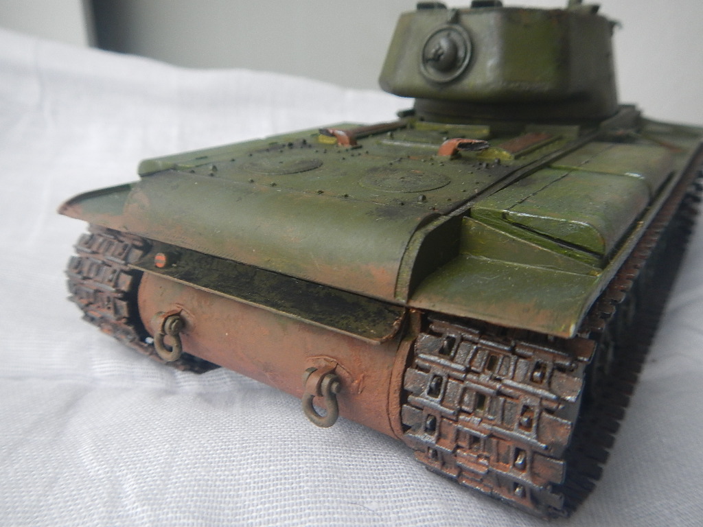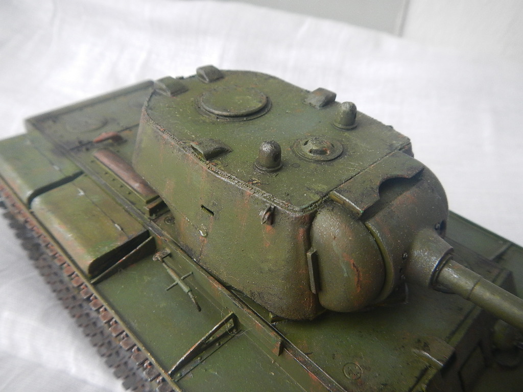 Башня сверху понравилась и катки опорные тоже хорошо вышли. Покраска ящиков сверху как-то не очень... Про решетки МТО уже сказали. И хорошо бы еще ходовую и корпус внизу загрязнить поразнообразнее... В целом, большой шаг вперед по сравнению с вашим первым КВ. С уважением, Серж.