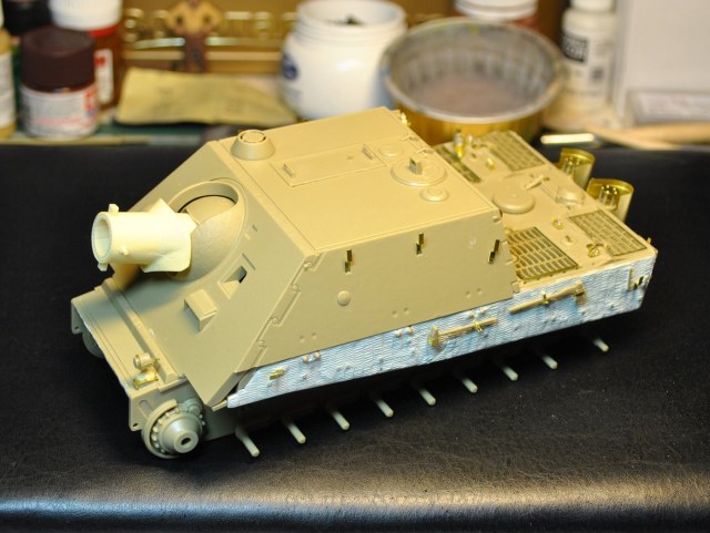 циммерит вышел неплохо, только вот спереди и сзади на нижних скошенных полосках брони его тоже надо было нанести, есть еще вопрос, что он мог быть под фарой и на передних брызговиках, но это уже по прототипу, а у вас привязки нет,