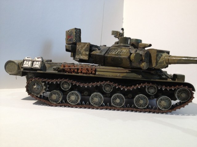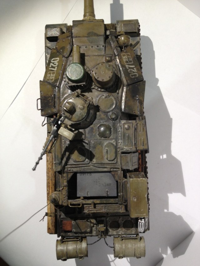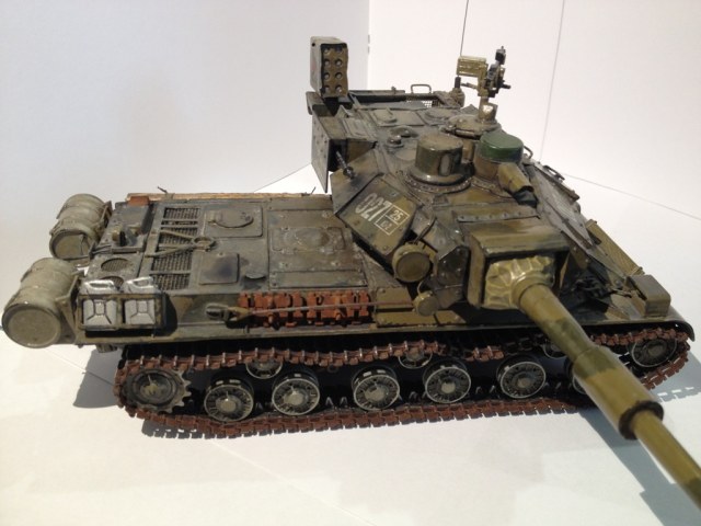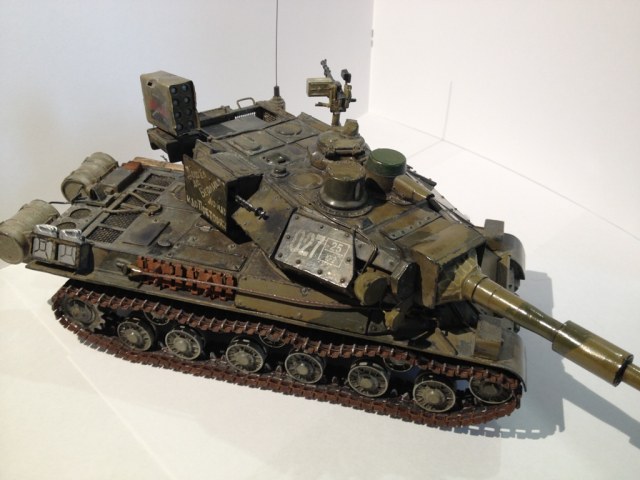 Нашел у родителей модель десятилетней давности, потрепанной временем и племянниками, немножко переделал. Использовались доски для лепки, пивжесть, краски Тамия, красил кистью.