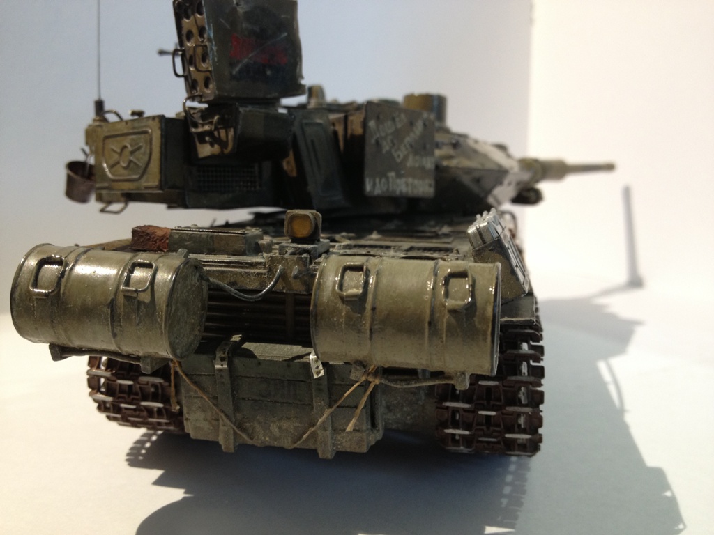 В принципе, сильно изменились только корма корпуса и корма башни, лоб и борта - родные, просто увешанные "экранами", взгляните на Т-72 первых модификаций и на Т-90. Танк тот-же, а в "обвесе" совсем другой вид.
